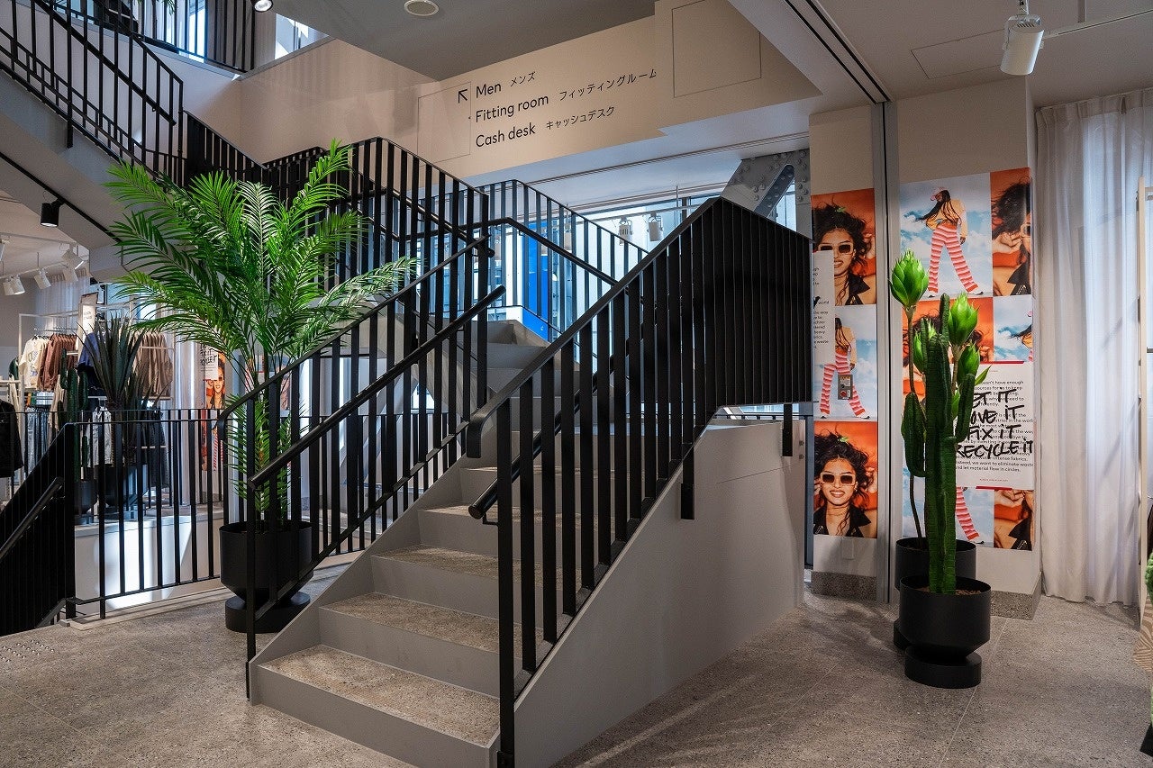 「H&M 池袋店」は、都内の主要駅の一つである「池袋駅」東口より徒歩数分圏内に位置する路面店です。売場面積は約1,000平方メートルの3フロア構成で、レディース、メンズに加え、若者をターゲットとするDIVIDED(ディバイデッド)のコンセプトを取り扱います。本店舗の大きな特徴として、H&Mで発生した不良品をアップサイクルした循環型繊維リサイクルボード「PANECO®(パネコ)」を採用したサステナブルな什器を店内一部に導入するなど、H&Mが取り組む”サステナブル”を表現する国内初となる店舗です。