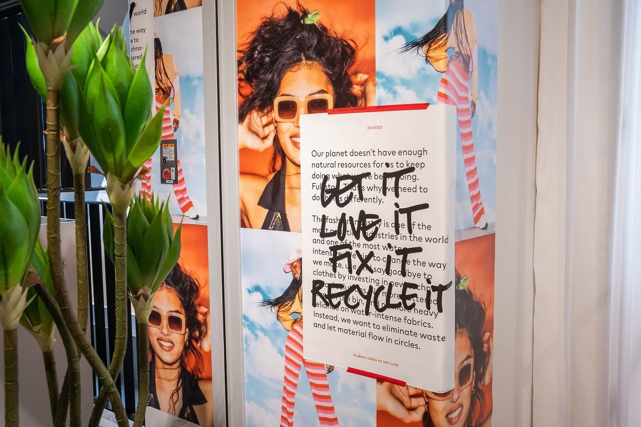 H&Mで発生した不良品をリサイクルしたPANECO®を什器に使用