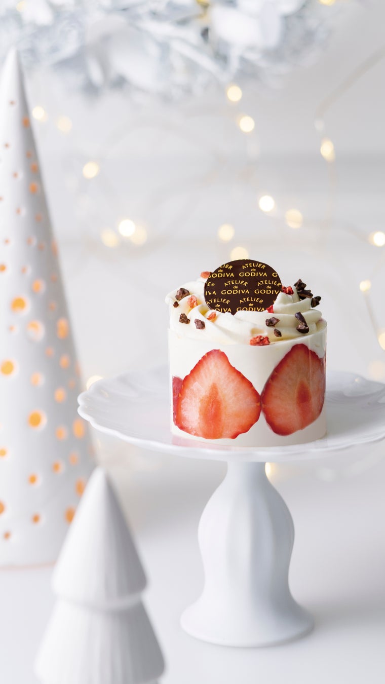 日本生まれのショートケーキを、ショコラティエが作ったら?ふんわりとした口当たりのホイップクリームに、ホワイトチョコレートを混ぜ合わせ、スポンジの上にたっぷりと絞りました。中にはダークチョコレートガナッシュを合わせて濃厚でほろ苦いチョコレートの味わいをプラスしました。ATELIER de GODIVA初のショコラティエのショートケーキです。