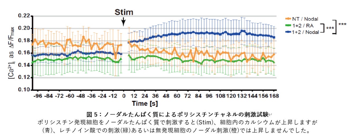 5.ポリシスチンたんぱく質はノーダルたんぱく質に刺激され細胞内にカルシウムを増やす