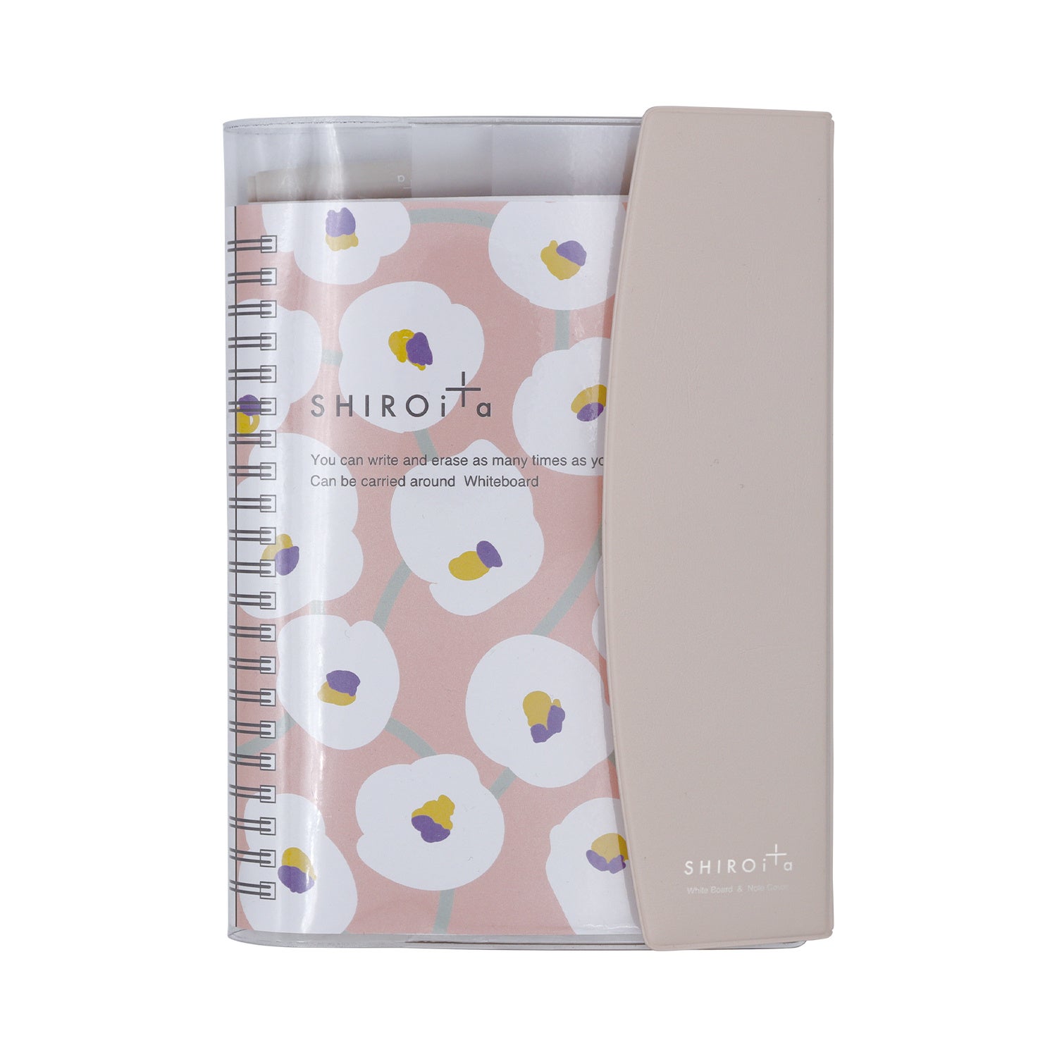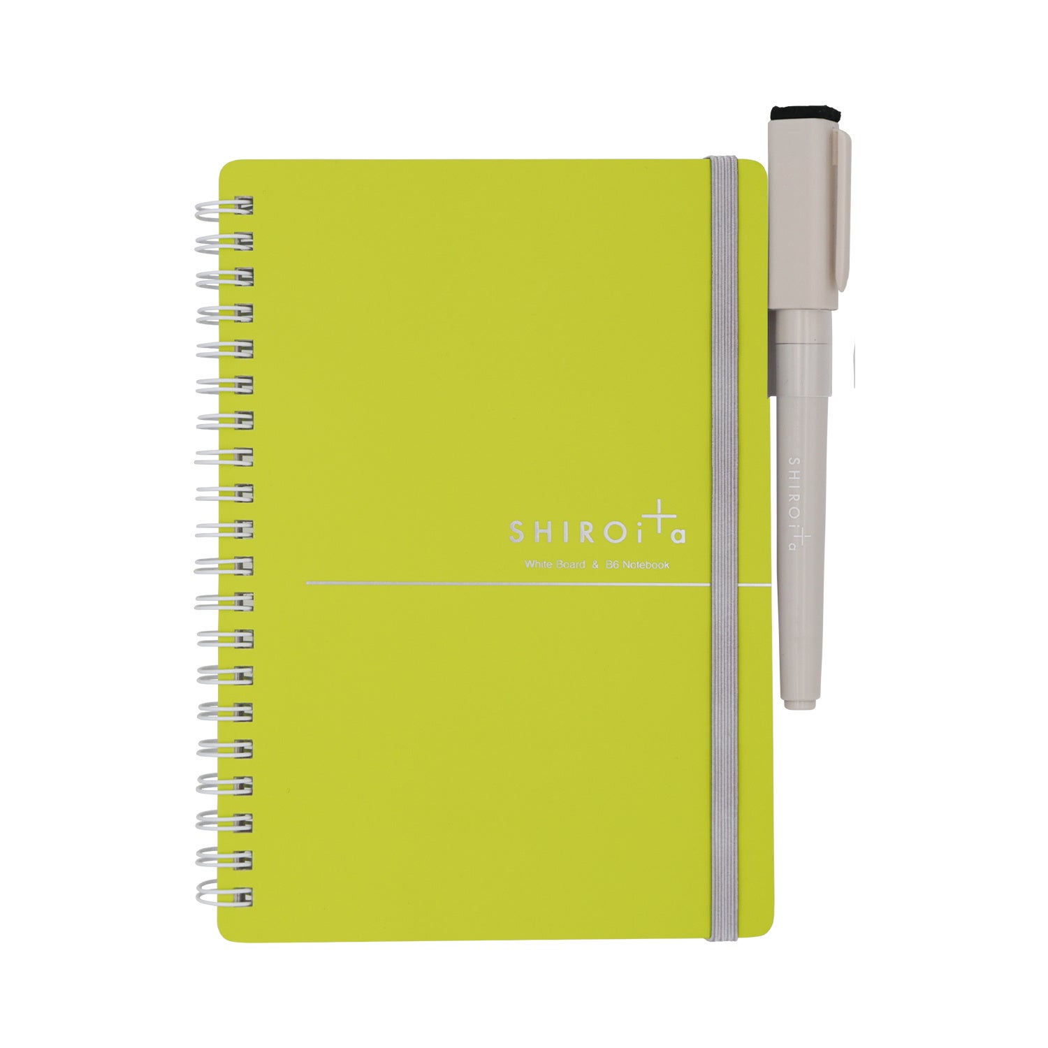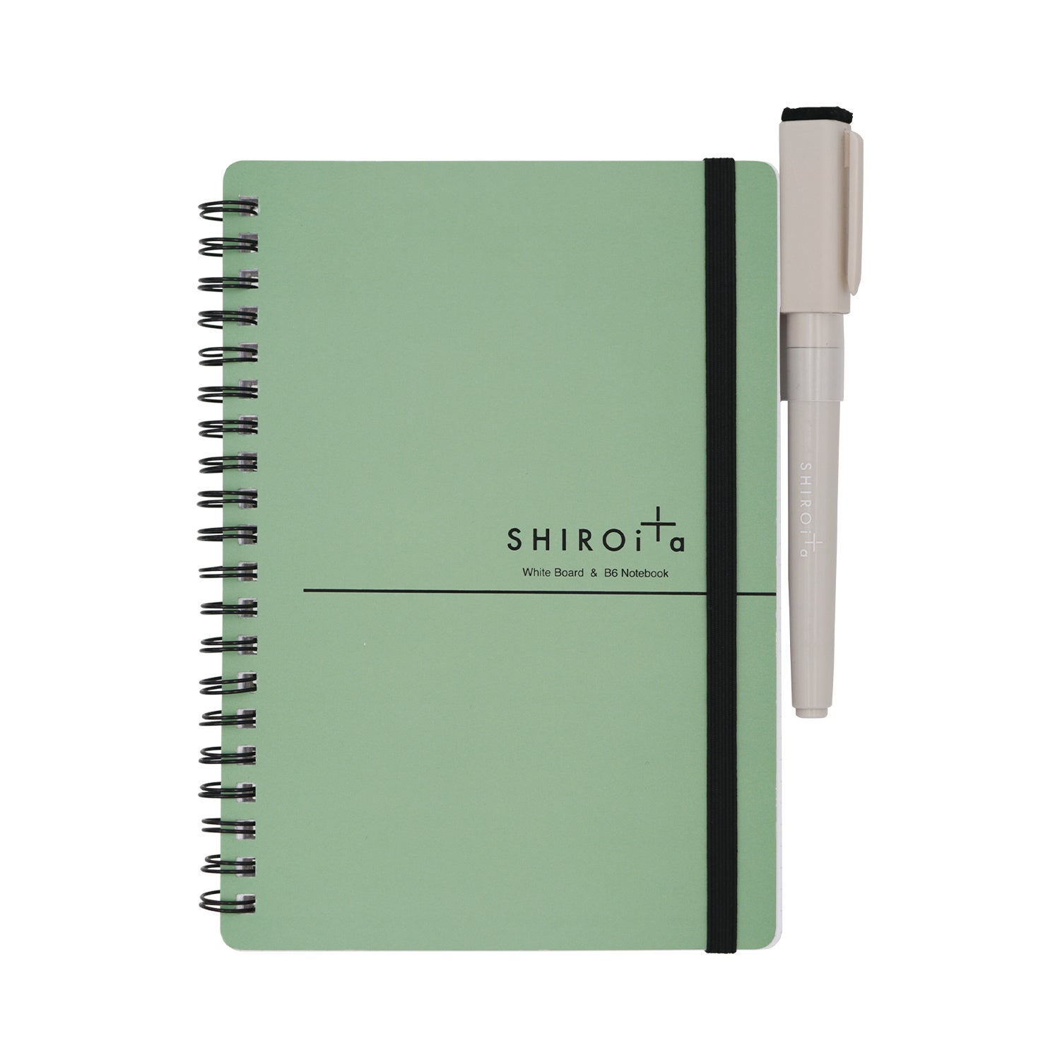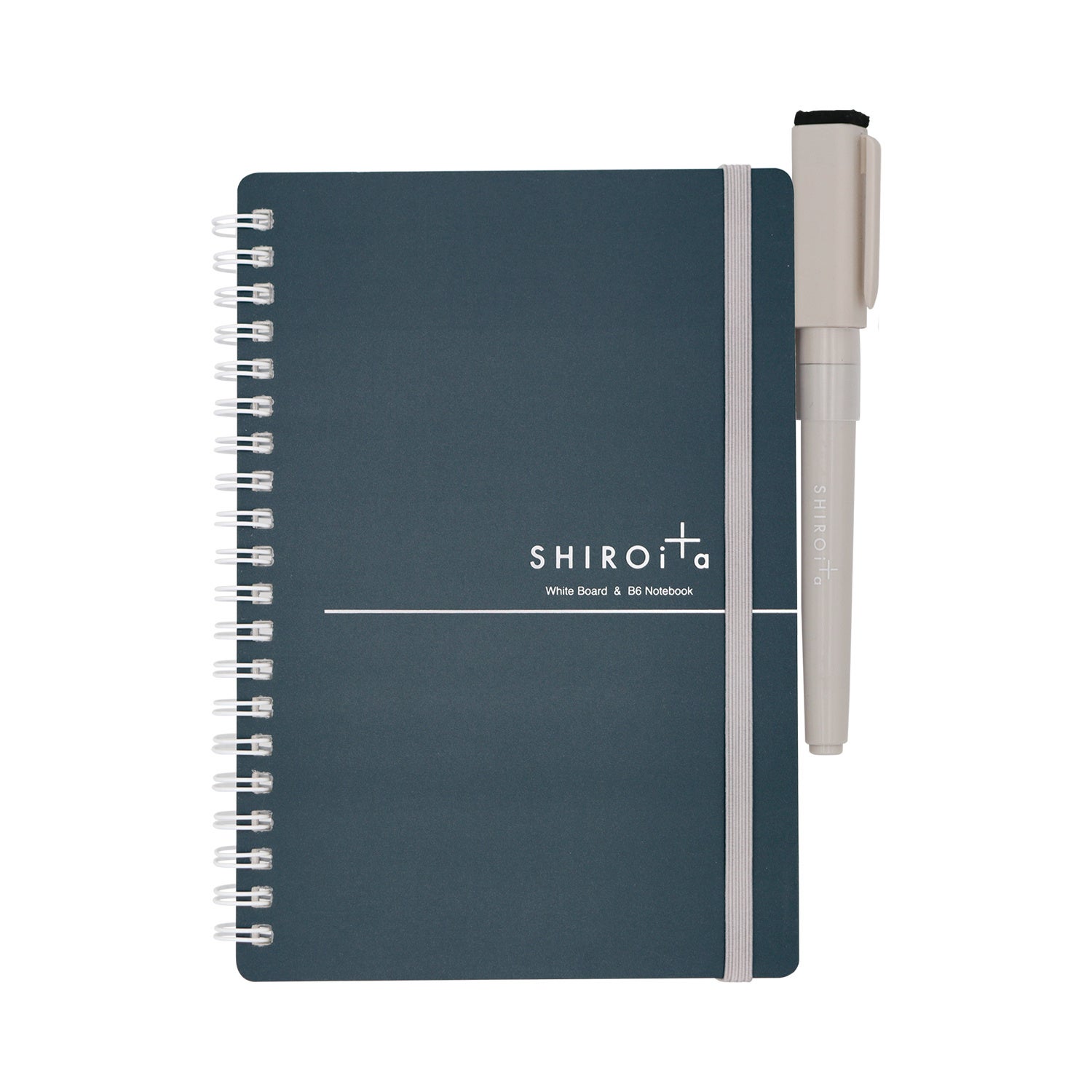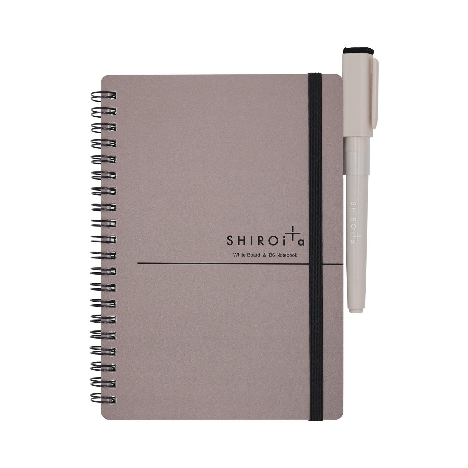 紙製のノートとホワイトボードページが一体になっているB6ノートです。ゴムバンド付きかつ、持ち運びに便利なサイズなので、出先での活用や、SHIROitaを初めてお使いになる方のエントリーモデルとしても最適です。極細0.5㎜のホワイトボードマーカーペン付き。