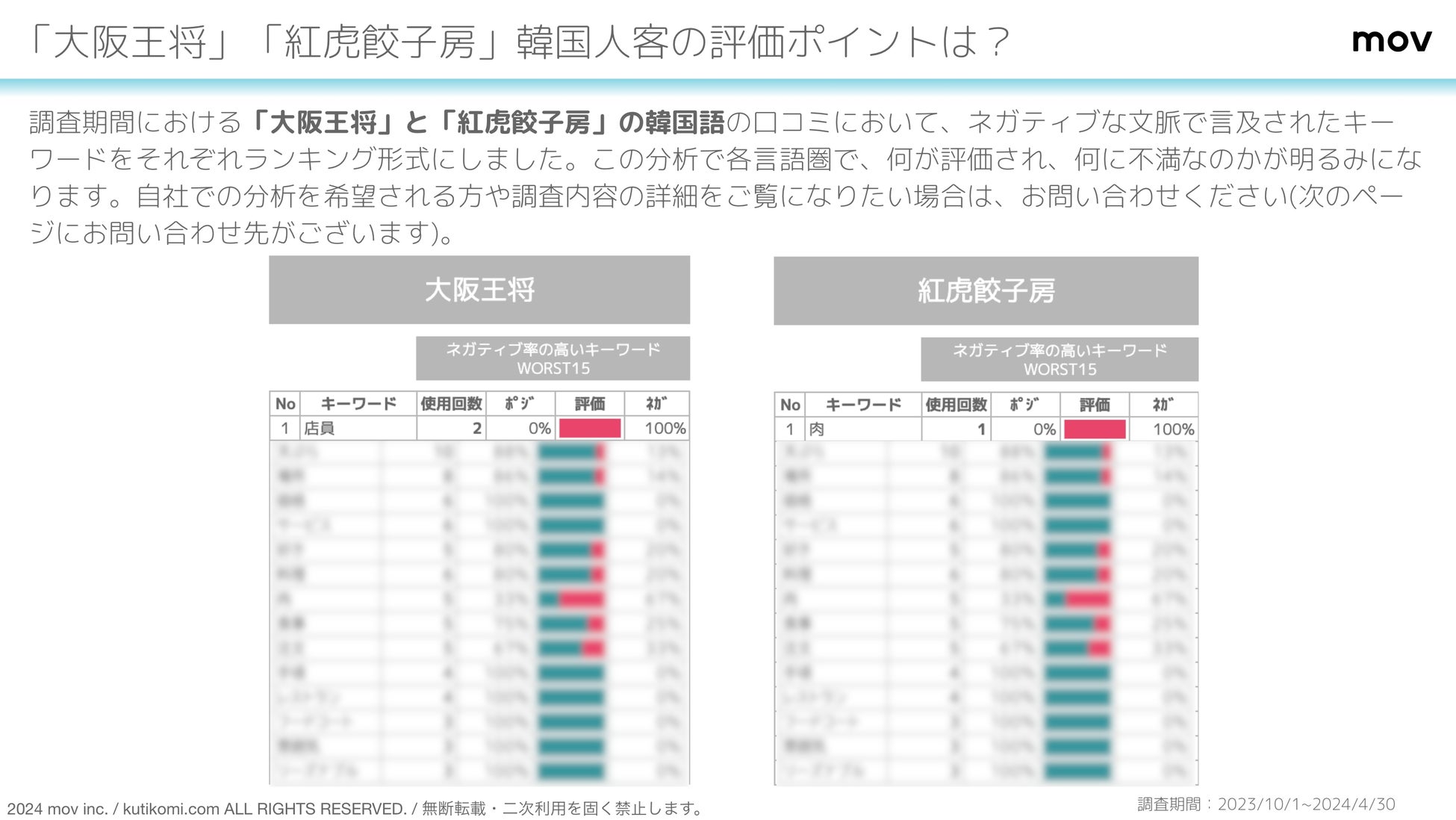 ■「大阪王将」「紅虎餃子房」韓国語圏の評価ポイントは?