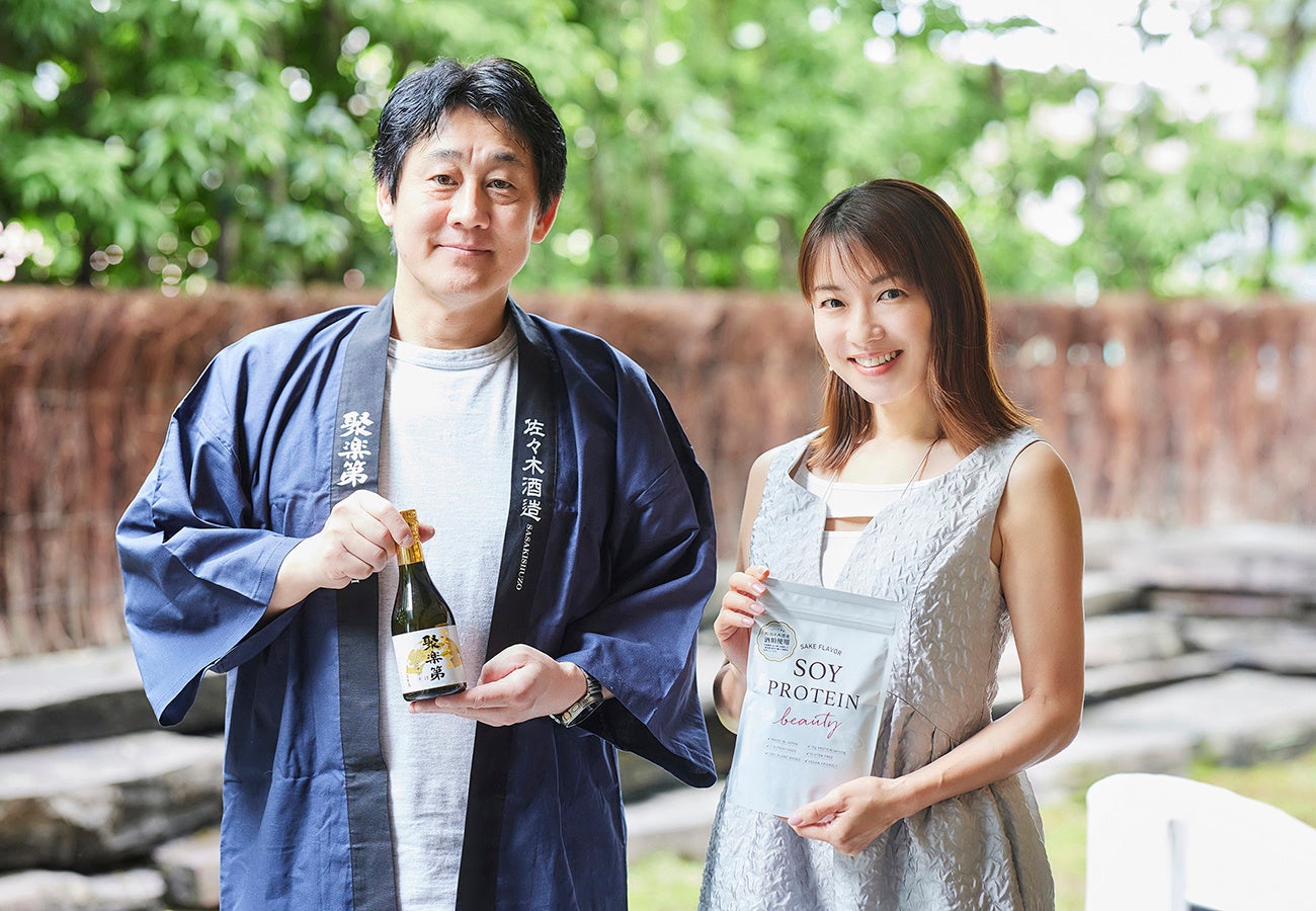美しく健康な体づくりの基本は食生活から始まります。人気の大豆プロテイン『ソイプロビューティ SAKE味』がソーシャルプロダクツアワード2024を受賞した記念トークショーで、美と健康の秘訣につながるお話を俳優の内山理名さんと、佐々木酒造社長の佐々木晃さんに伺いました。当日は京都おもてなし親善大使 頭川展子さんの進行で、表参道にある、現代美術アーティストの杉本博司氏が設計した「茶酒 金田中」で行われました。