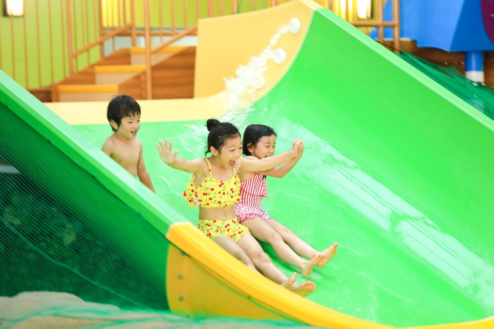 さらに、日差しを避けて遊べる屋内キッズプール「JAVAJAVA」は、プールデビューにもぴったりなエリアです。小さなお子さまでも安心して遊べる設備が充実しており、親子一緒に楽しめます。プール用オムツの上から水着を着れば利用できるのも嬉しいポイント。また、このエリアにはみんなで滑れるワイドスライダーを含む、全3種類のスライダーがあるので、お子さまも思いっきり楽しめます。