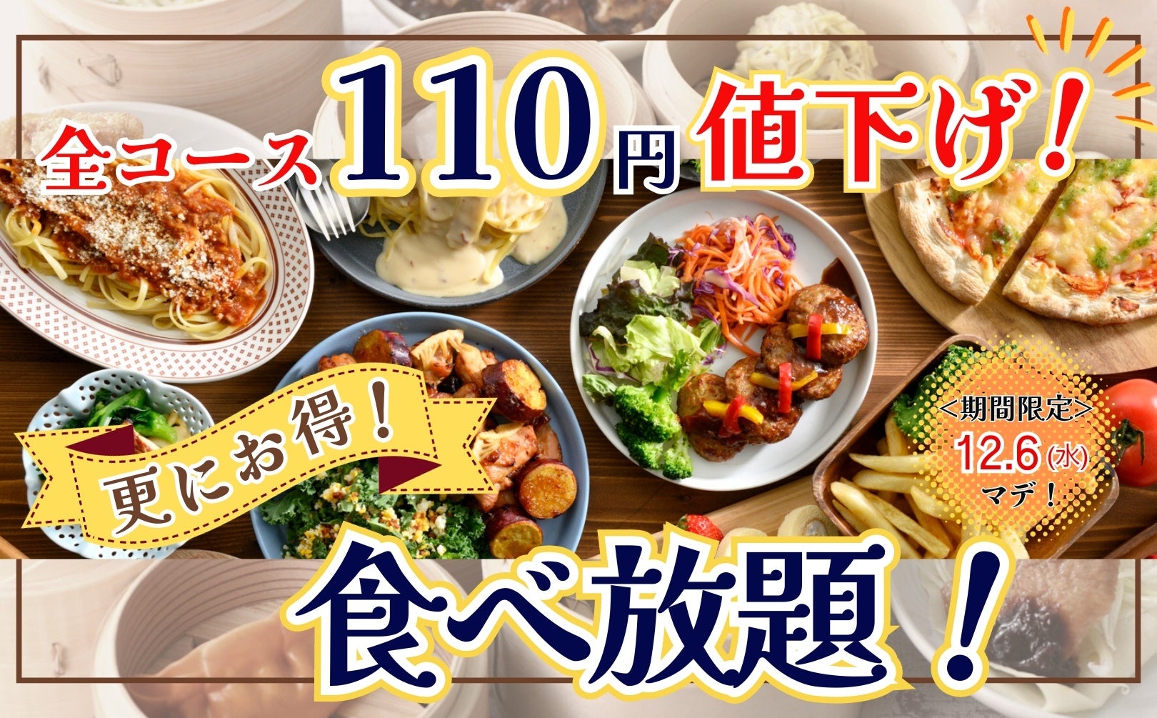 2023年10月5日(木)~ 2023年12月6日(水)の期間限定にて、なんと『全コース110円値下げ』を実施!