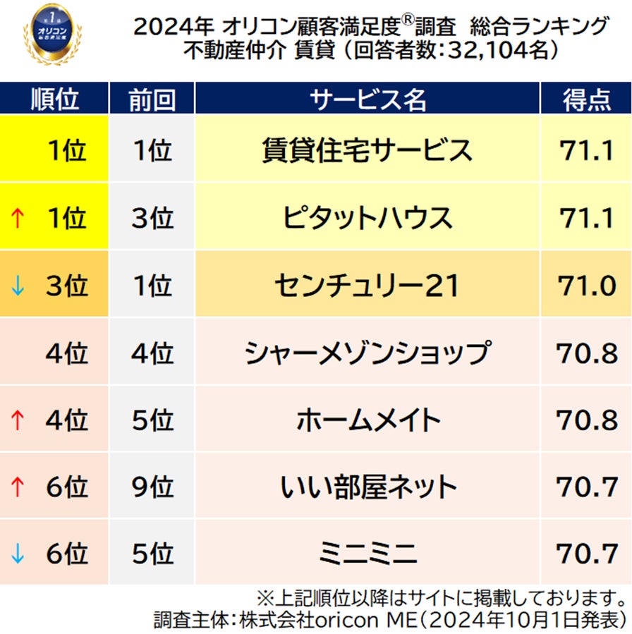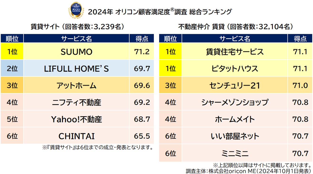 ■【賃貸住宅サービス】と【ピタットハウス】が同点で総合1位