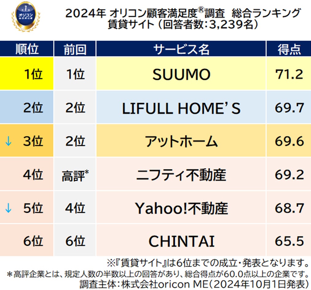 2024年 オリコン顧客満足度®調査 賃貸サイト