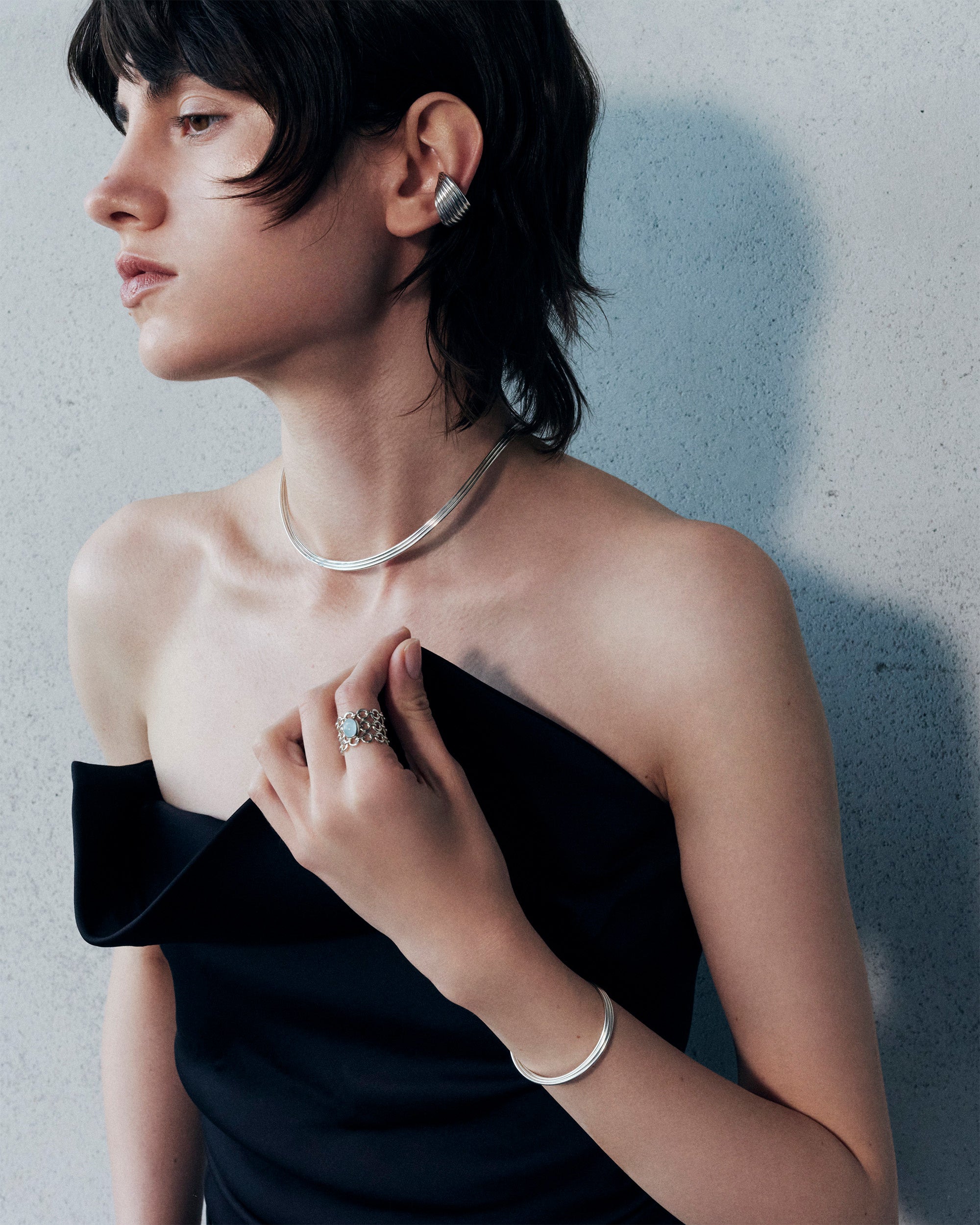 輪を繋げて編み上げたチェインメイル(鎖帷子)を連想させる「MAILS/メイルズ」シリーズより、新たに多連リングが登場。細身の甲丸線をリンクさせ重ねていく多連リングは、規則性を持った凸凹のディテールがシンプルな中に潔い表情を生み出します。着けごたえのある15連リングと、程よいボリューム感が魅力の6連リングの2タイプ展開。