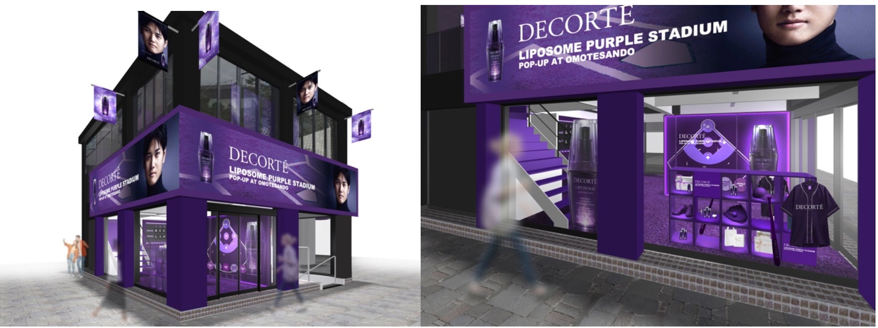3月19日(火)よりBAKERY CAFE 426 OMOTESANDO(東京都渋谷区神宮前4丁目26− 18 原宿ピアザビル)にて、DECORTÉ ✕ 大谷翔平選手の世界観が感じられる期間限定ポップアップ「DECORTÉ LIPOSOME Purple Stadium POP-UP at OMOTESANDO」がオープン。「リポソーム アドバンスト リペアセラム」のパープルを基調とした店内は、商品をお試しいただけるだけでなく、野球場さながらの世界観を演出し、DECORTÉオリジナルロッカールームや大谷選手の等身大リポソーム美容液フォトスポット、さらにピンボールゲームなど数多くのコンテンツを展開。ご来場者様にはもれなくリポソーム美容液の3日分サンプルプレゼントのほか、「#シェアリポ キャンペーン」による名入れサービスや限定サンプル、更にDECORTÉオリジナルクッキーが貰える購入特典もご用意。ここでしか楽しめない特別な体験をぜひお楽しみください。