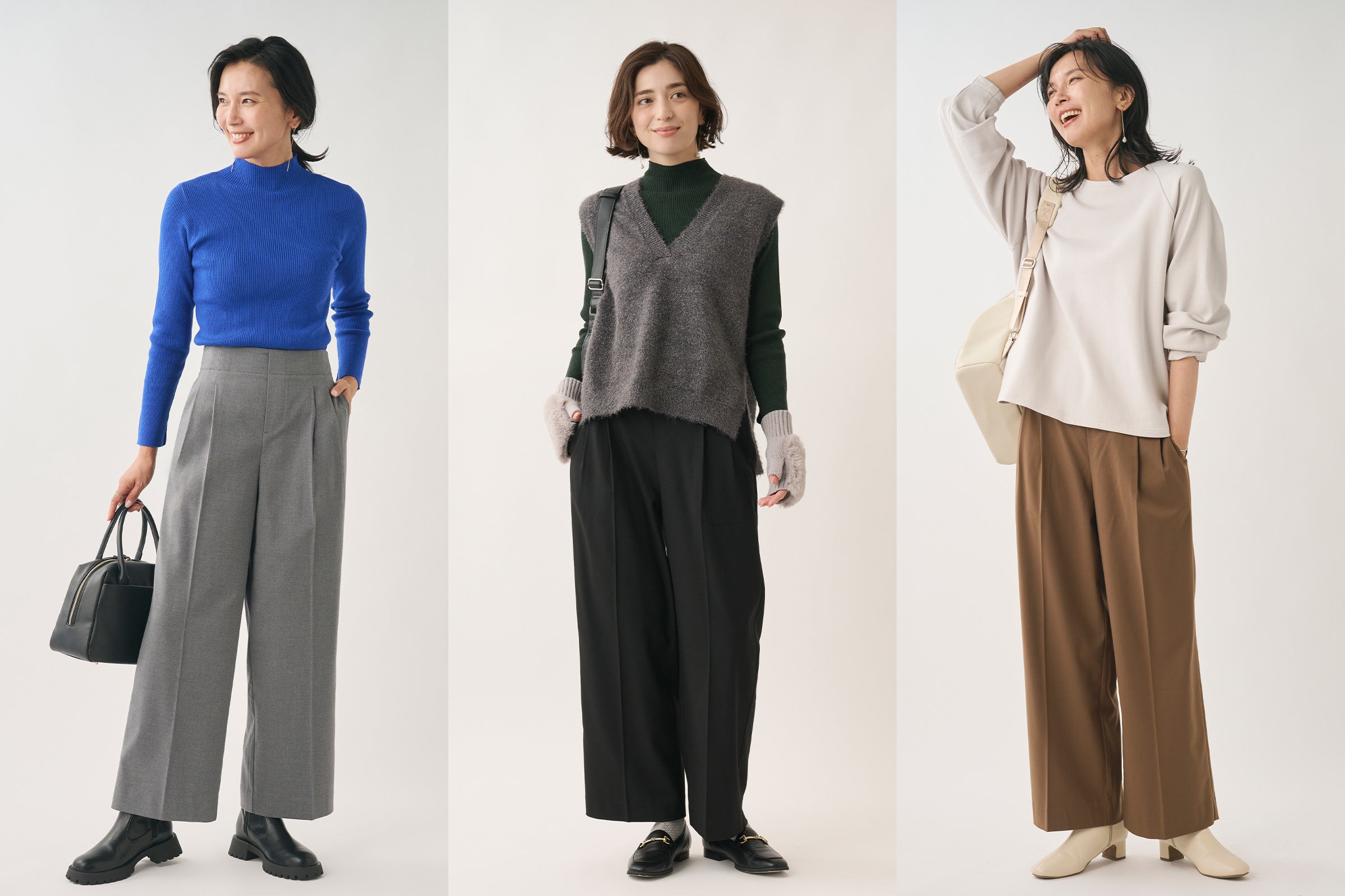 きれいめにもカジュアルにも馴染む、こだわりのタックワイドパンツ。“美しく見せる”と“快適に過ごせる”を両立した、秋冬のスタイルアップアイテム。