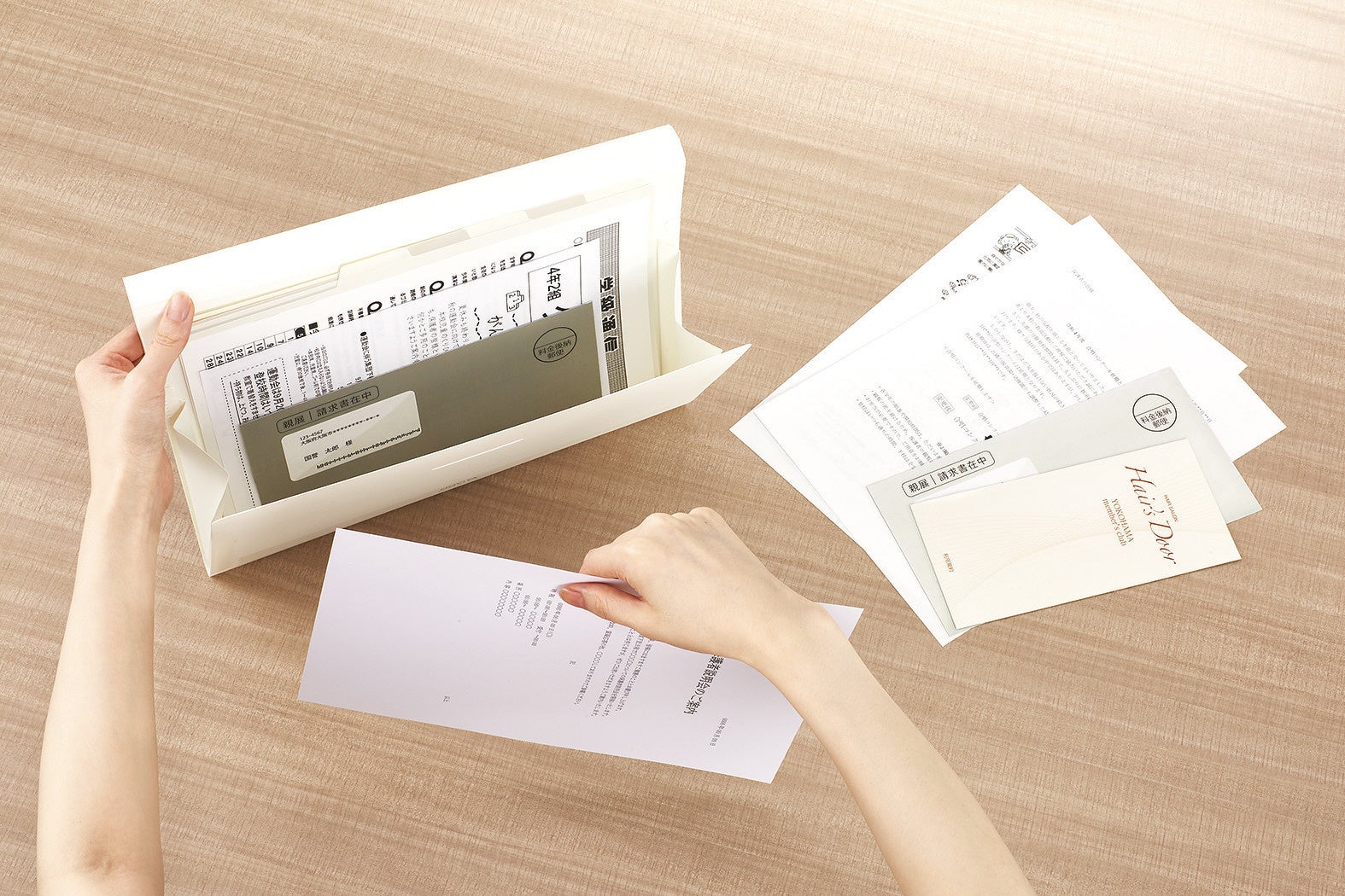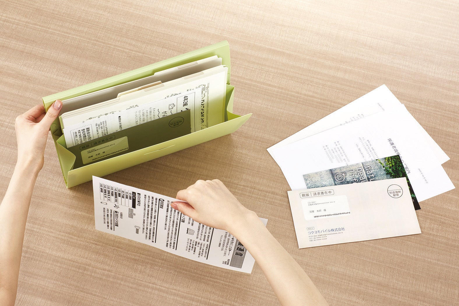 ポケットが連なった形状のドキュメントファイル(書類ファイル)は、種類や大きさの異なる書類もひとまとめにざっくり収容できるのがメリットです。しかし一般的なドキュメントファイルは、ひとつひとつのポケットの開く範囲が狭く、特に小さな紙類は底の方に埋もれてしまうため、探しにくく取り出しにくいという声もありました。