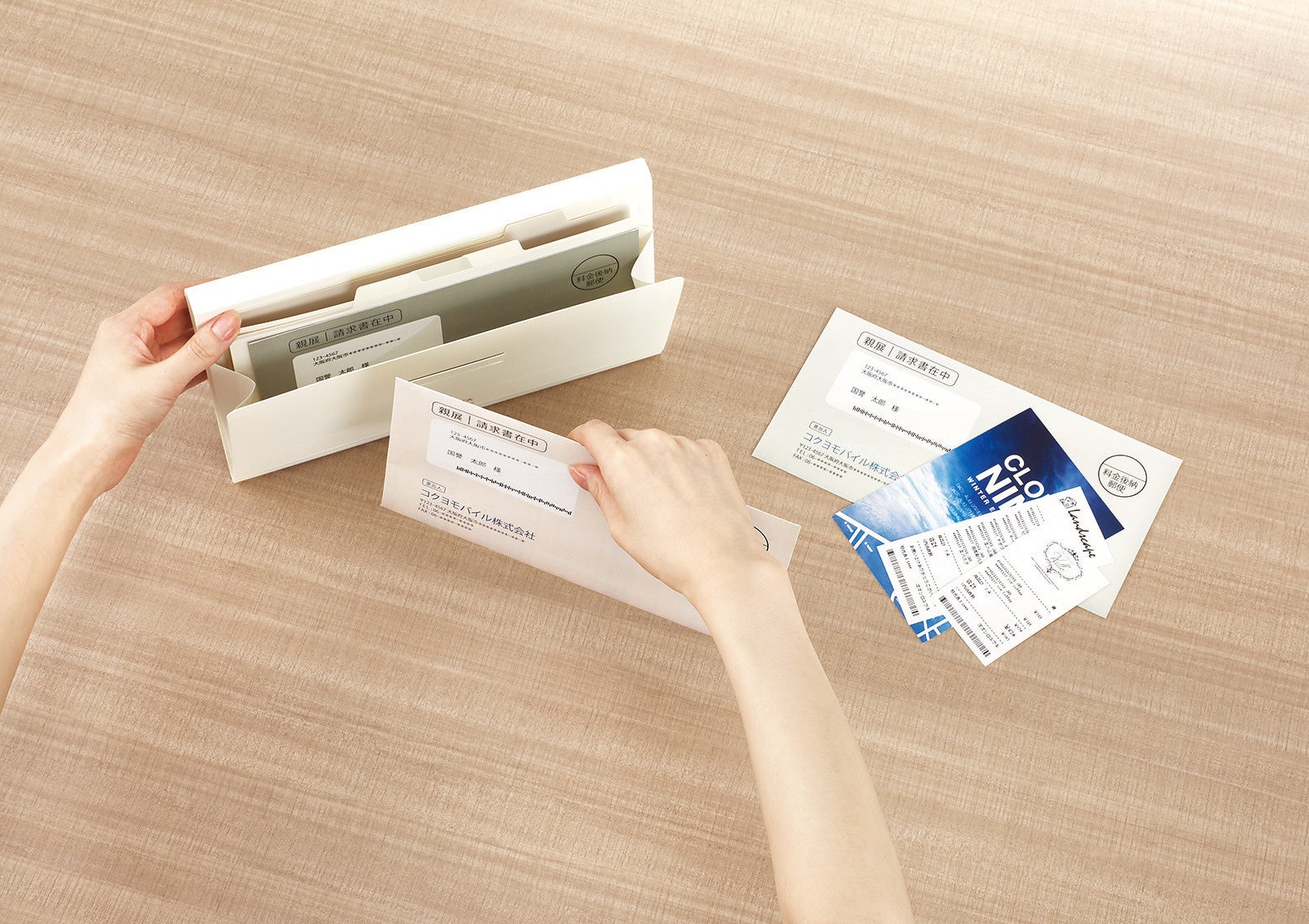 厚さが変わる構造で収納効率も抜群!A4・封筒・カードの3サイズをラインアップ
