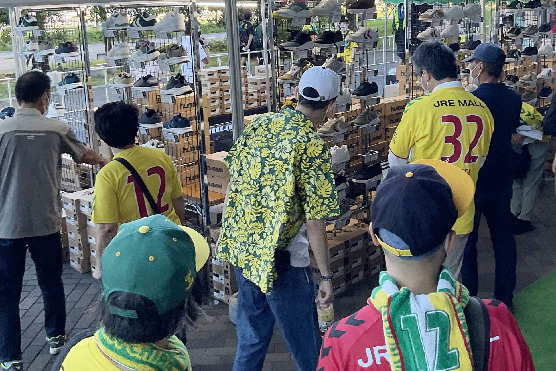 そんなアゲアゲの状態で迎える36節はヒュンメルマッチデーに。12節に続いて、北1ゲート下イベントスペースにヒュンメル臨時ショップがお目見えし、アパレルやシューズを販売。ひとりでも多くのサポーターに集まってほしいという気持を込めた感謝価格のアイテムも並びます。