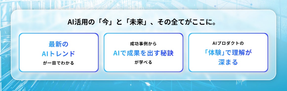 来場者は最新のAI技術やサービスを直接体験することができる他、AI技術の導入に関する疑問や課題を解決するための情報交換の場としても機能します。
