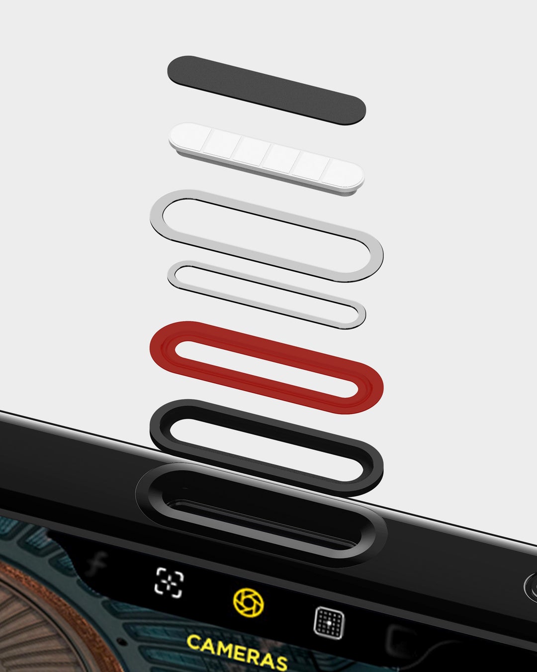 - カメラコントロールボタンをカバー。ボタンの感度を保つための精密設計