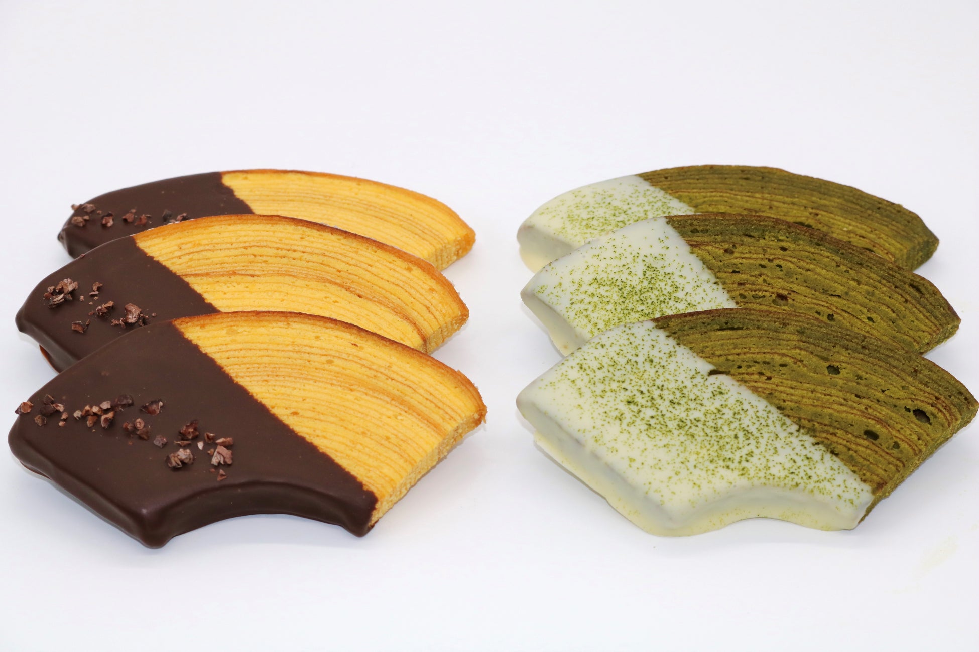 京都宇治抹茶の中でも、香り深い旨味を感じることができる〈祇園 北川半兵衞抹茶〉を使用したバウムクーヘンに、甘味が控えめで口溶けのよいベルギーチョコレートを合わせました。