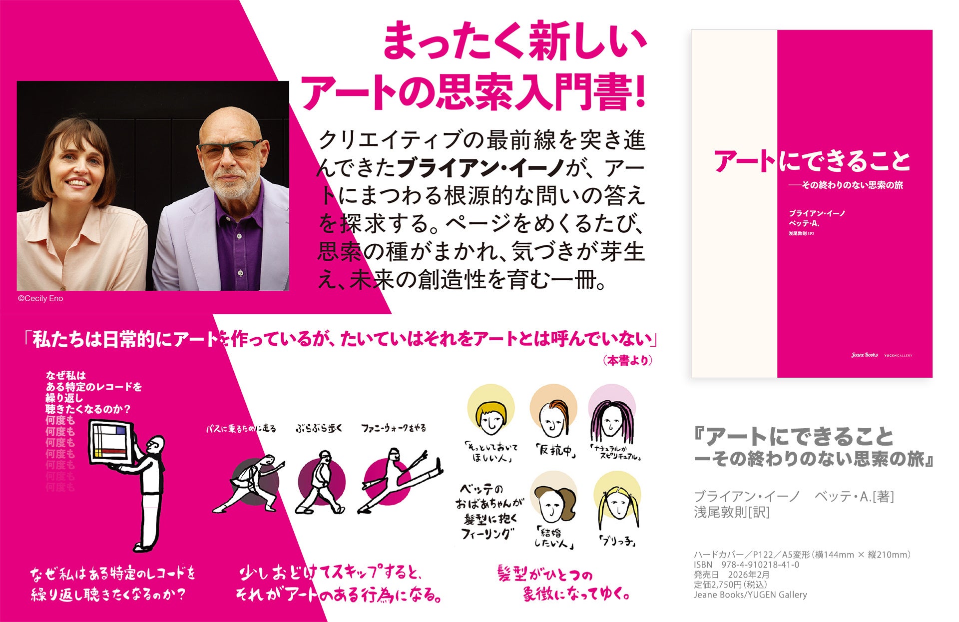 株式会社ジーン(本社:東京都港区南青山)は、世界的アーティストであるブライアン・イーノの著作『アートにできることーその終わりのない思索の旅』(原題 What Art Does: An Unfinished Theory)をジーンブックスより2026年2月10日(火)に発売いたします。