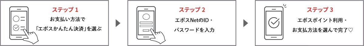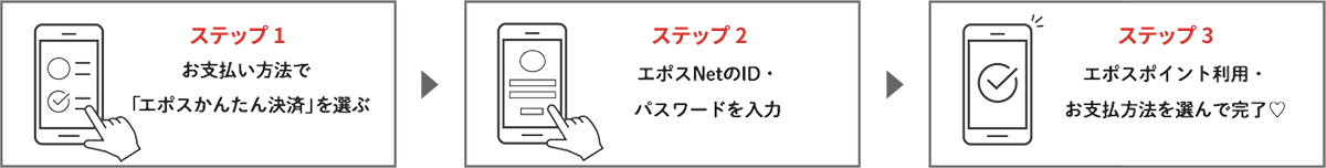 エポスかんたん決済は、たった3ステップで安心・安全にお支払いいただける決済サービスです。
