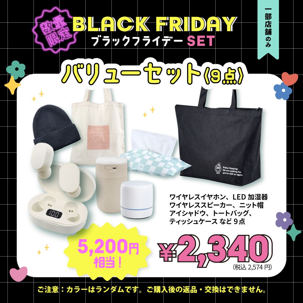 バリューセットには家電製品からファッションアイテムまで幅広いアイテムが含まれており、今年7月にリニューアルしたばかりのカナル型ワイヤレスイヤホン(1,560円(税込1,716円))や、乾燥するこれからの季節に嬉しいLED加湿器が必ず入るお得な9点入りセットです。