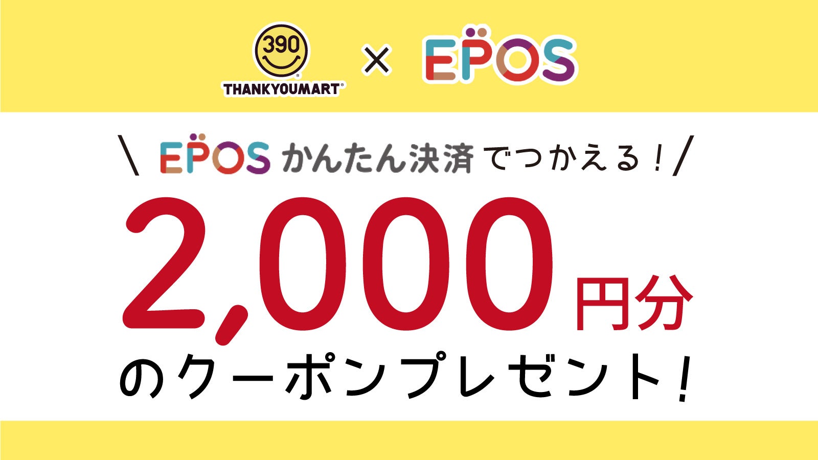 ショップよりエポスカードに新規ご入会いただくと、サンキューマートでエポスかんたん決済時に使える2,000円分のクーポンがプレゼントされます。エポスカードは丸井グループの会社が発行する、あんしん・安全なクレジットカードです。Visaのマークのあるお店でご利用頂けます。