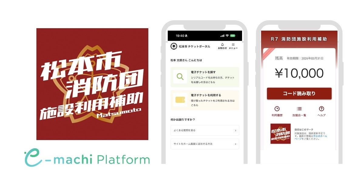 eギフトプラットフォーム事業(※1)を展開する株式会社ギフティ(本社:東京都品川区/代表取締役:太田 睦、鈴木 達哉/以下、ギフティ)は、自治体・地域の課題を解決するデジタルプラットフォーム「e街プラットフォーム®️」(※2)および「e街チケットポータル」(※3)を、長野県松本市が実施する「消防団電子クーポン事業」に採用いただきました。これにより、2025年6月23日(月)より、「e街プラットフォーム®️」を活用し、松本市が発行する「消防団施設利用補助クーポン」の電子での発行・利用を開始いたしました。を本件は、松本市が2024年に電子化し発行を開始した「松本市子育てクーポン」の運用時に導入をいただきました「e街プラットフォーム®️」および「e街チケットポータル」をマルチユースした案件であり、初となる公務員の福利厚生施策での採択となります。なお、本件は、松本市より事業を受託したJTB長野支店からの委託を受けて実施しております。