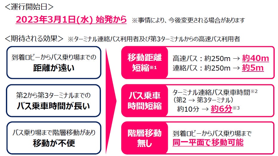 ※2 第3から第2ターミナルへのバス乗車時間は変更なし(約3分)