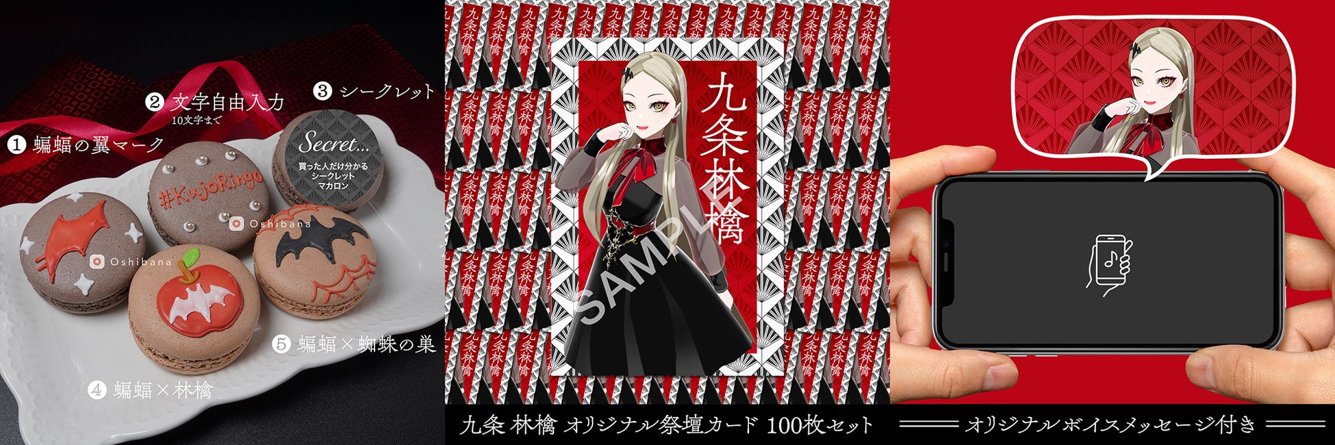 VTuber九条林檎さんとのコラボ推しマカロンでは、御本人の衣装などから着想を得たモチーフをふんだんに使ったオリジナルマカロンを作成。買った人だけが分かるシークレットのマカロン、オリジナル祭壇カード最大100枚付属、購入者限定特典のボイスメッセージを録りおろすなどの仕掛けを盛り込んでいます。梱包や緩衝材の配色まで、徹底的に推し色でコーディネートしました。世界観を追求したことで、XなどのSNSにはファンの方が楽しんでいる様子が多数投稿されました。