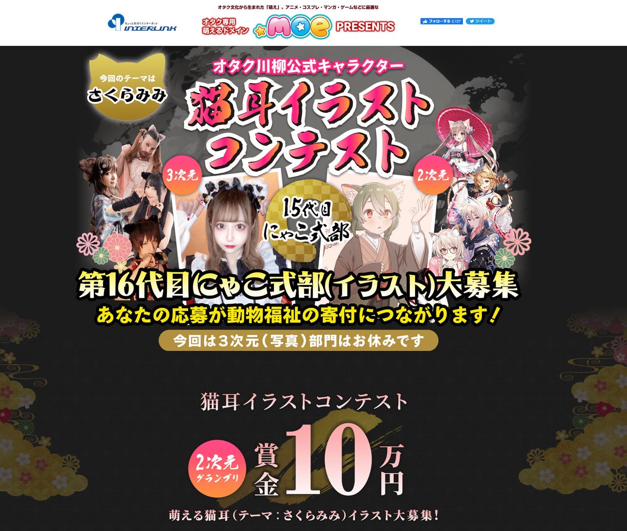 ~応募作品1点につき動物愛護活動団体へ100円を寄付、グランプリ受賞者に賞金10万円~オタク川柳公式キャラクターにゃこ式部(16代目)を決める「猫耳コンテスト」応募受付開始