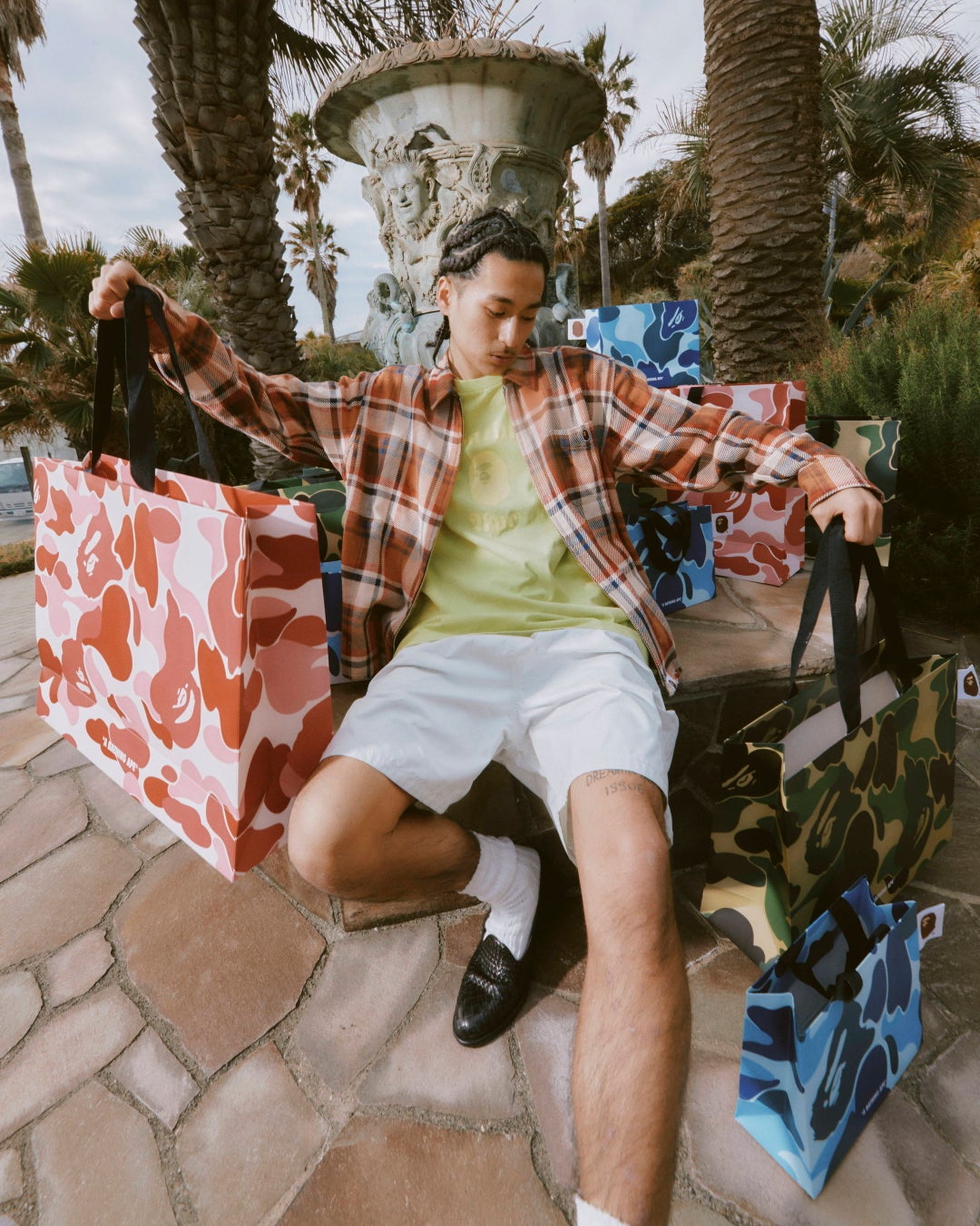 象徴的なプールサイドでのワンシーンや、仲間とリラックスするひと時、そして夜の色気のあるシーンまで、その全てにマッチするBAPE®の24SSコレクションに注目。