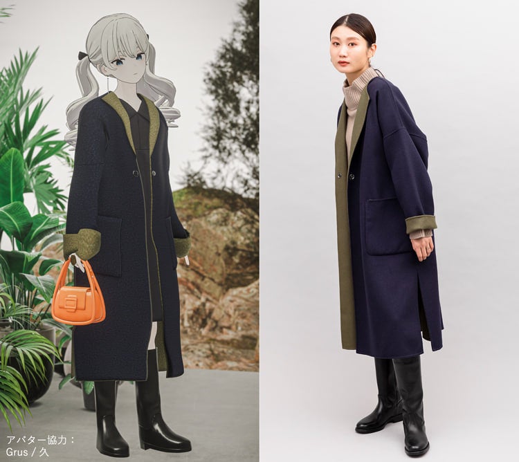 リアル(実在)商品を3Dモデルに起こしたアバター用の3D衣装を、スーツ、ワンピース、コート、ブーツ、バッグ、バラクラバ、アームウォーマーなど合計11型、バーチャルショップで販売中です。オリジナルレーベルBEAMS FとDemi-Luxe BEAMSを中心に、いずれも全国の店舗及び公式オンラインショップで販売中の商品を3Dモデルに起こしたデジタルツイン商品で、スタイリングをリンクして見せることでバーチャルとリアルの垣根をなくしたファッションの楽しみ方を演出しています。バーチャルショップ内では陳列された商品をクリックするだけでユーザーのアバターが商品を簡単に試着できる機能を実装し、ショッピング体験を盛り上げます。
