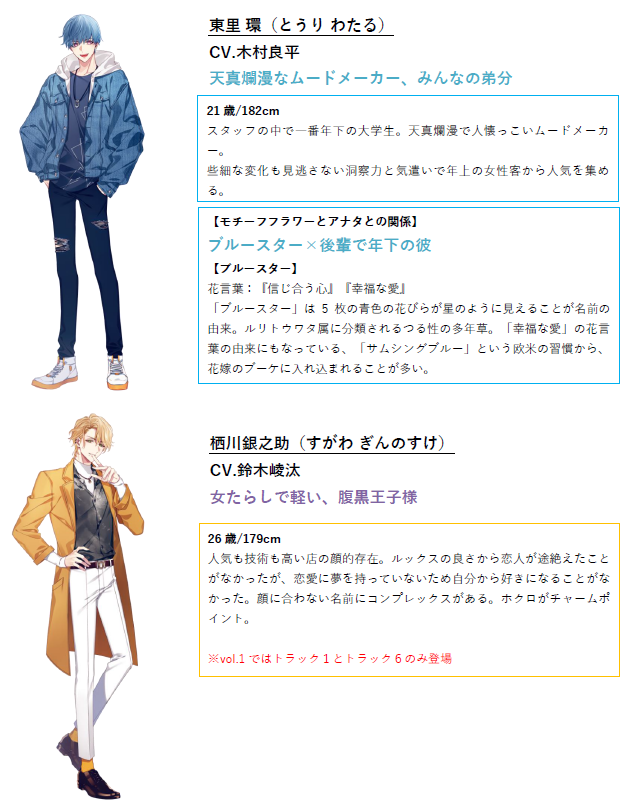 普段は天真爛漫ですが、消耗もするし、傷つくこともある。だけど、大好きな彼女だったり花だったり、仕事というものがあるからこそ、前に進めるよね、幸せでいられるよねという気持ちにさせてくれます。聞いた方はきっと癒されて元気をもらえる作品なんじゃないでしょうか。vol.1ということで、この「花笑む彼と」のシリーズの始まりとして、ぜひお手に取ってもらえたら嬉しいです。