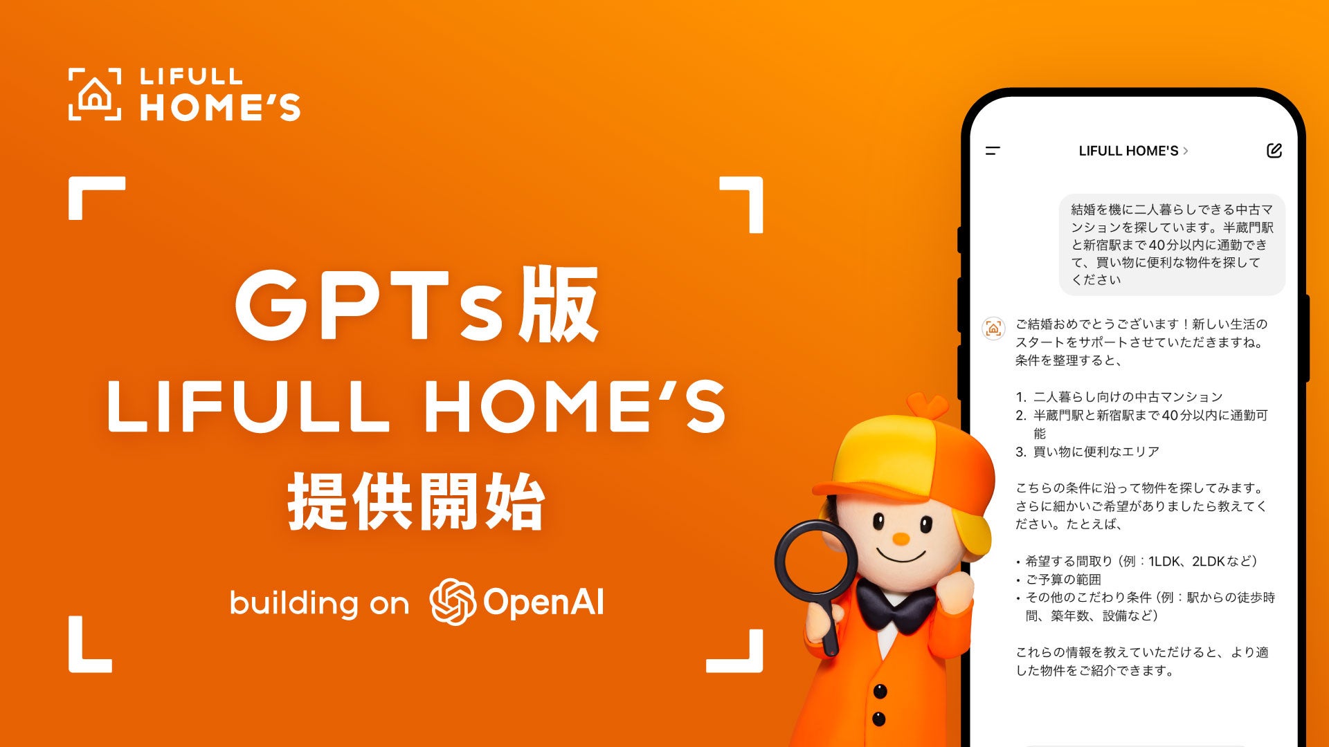 一人ひとりに寄り添った住まい探しをお手伝いする、GPTs版「LIFULL HOME'S」を提供開始