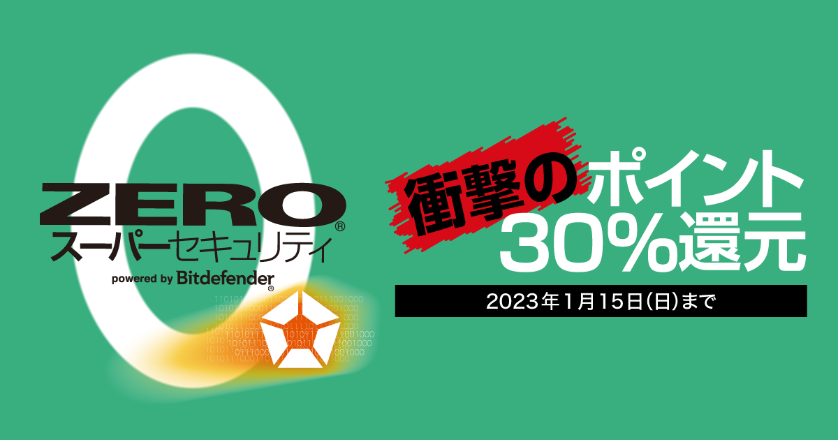 「ZERO® スーパーセキュリティ」のポイント30%還元キャンペーンを開催/本日から1月15日(日)まで