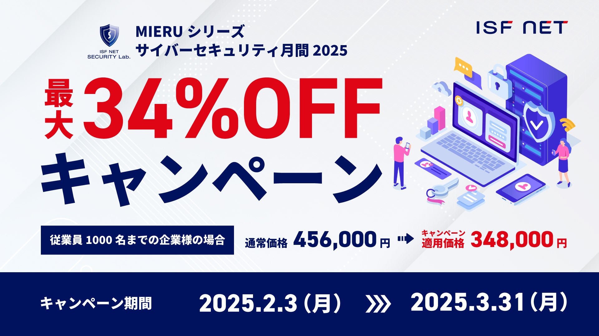 株式会社アイエスエフネット(本社:東京都港区/代表取締役:渡邉幸義、以下アイエスエフネット)は、「NISCサイバーセキュリティ月間2025」(※1)にあわせて、MIERUPASSとMIERUTRAPのセキュリティソリューションをセットで期間限定割引価格にて提供いたします。