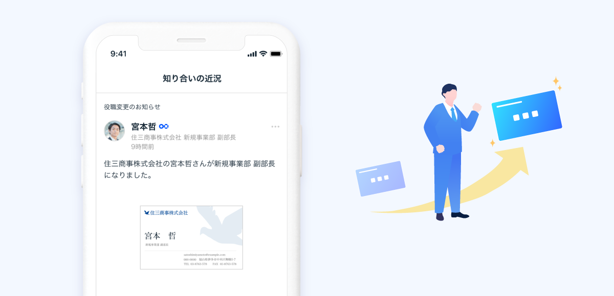 ・昇進や異動の情報も把握でき、関係性を継続できる