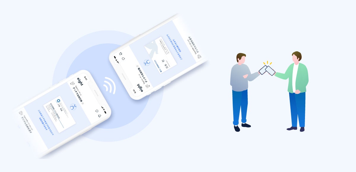 Eightは、価値ある出会いをタッチでつなぐ、ビジネスのための名刺アプリです。2012年の提供開始以来、350万人を超えるユーザーに利用されています。Eightでは、名刺を管理するだけでなく、ユーザー同士がスマートフォンをかざすだけでデジタル名刺を交換することができます。Eightで交換したデジタル名刺は、昇進・異動・転職などの情報が自動で更新されるので、相手の近況をスマートに把握できます。Eightはタッチ名刺交換と名刺管理で、これまで培ってきた人脈を活かしたビジネス機会を創出します。