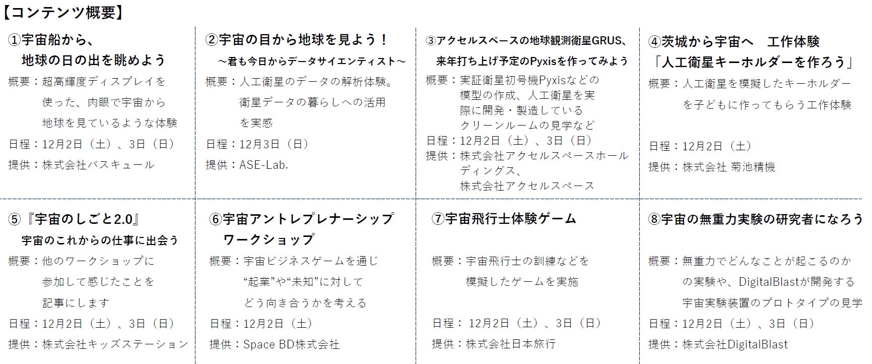 3回目の開催となる今年は「ぼくらは、宇宙ではたらける時代に生まれた。」をテーマに、子供から大人まで宇宙を身近に感じ、「宇宙の仕事」を体験できるコンテンツを多数展開いたします。