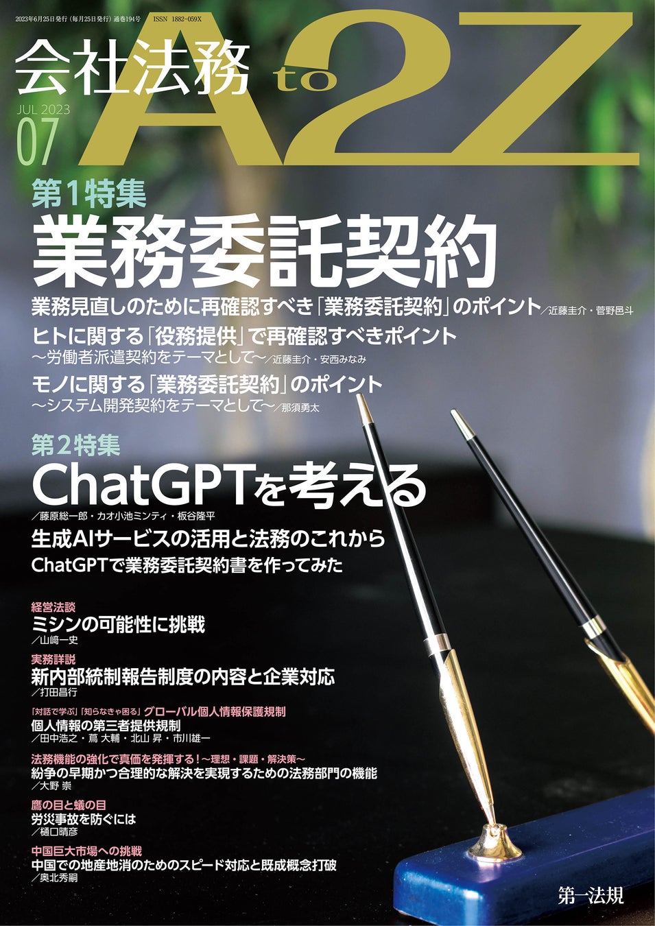 【会社法務A2Z】最新の企業トレンドや法改正情報の解説を毎月お届け!2023年7月号特集は”業務委託契約/ChatGPTを考える”!
