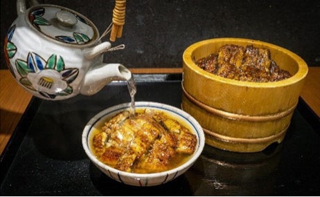 浜松のウナギを贅沢にお茶漬けに。一説に よれば、大きくなりすぎた鰻をぶつ切りにして食べていたまかない料理が起源。だし汁と鰻の相性が抜群。