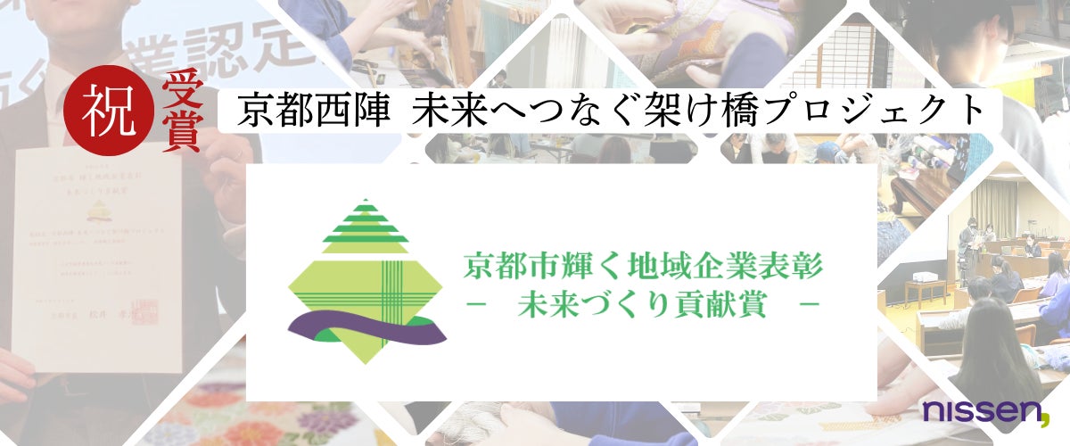 株式会社ニッセン(本社:京都市南区、代表取締役社長:羽渕淳)は、京都市、西陣織工業組合と連携し、伝統工芸品「西陣織」を活性化し、未来につなげるための活動『京都西陣 未来へつなぐ架け橋プロジェクト』に対して、京都市による「令和6年度 京都市輝く地域企業表彰 未来づくり貢献賞」を受賞したことをお知らせいたします。