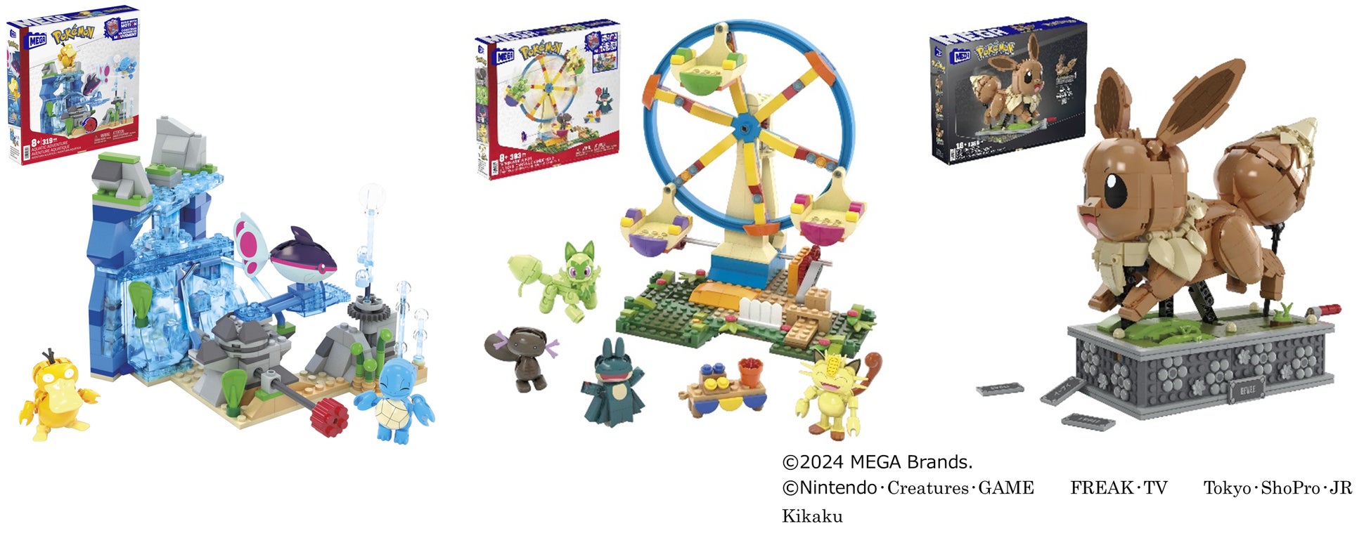 世界大手の玩具メーカー、米国マテル社の日本法人であるマテル・インターナショナル株式会社(本社:東京都千代田区、代表取締役社長:石井恵三)は、ブロックを組み立ててリアルに再現できる「メガ ポケモン アドベンチャーワールド シリーズ」から、しかけがたくさん詰まった「水中を冒険!~ゼニガメ・コダック・ケイコウオのセット~」「ワクワク観覧車!~ニャース・ゴンべ・ニャオハ・ウパー(パルデアのすがた)のセット~」を発売いたします。さらに、クリエイター心を刺激する、再現性の高さで人気を誇る、「イーブイが走る!ムービング イーブイ」を7月6日(土)より発売いたします。