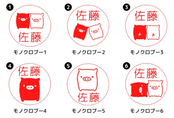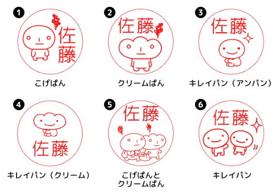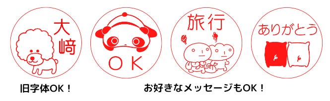 苗字や名前はもちろん、旧字体、ペンネームやハンドルネームのほか、「大丈夫」「OK」「見ました」「ありがとう」といったメッセージを入れることもできます(漢字3文字・ひらがなカタカナ5文字・アルファベット6文字まで。なおイラスト見本のようなキャラ名のままでの制作もOKです)。
