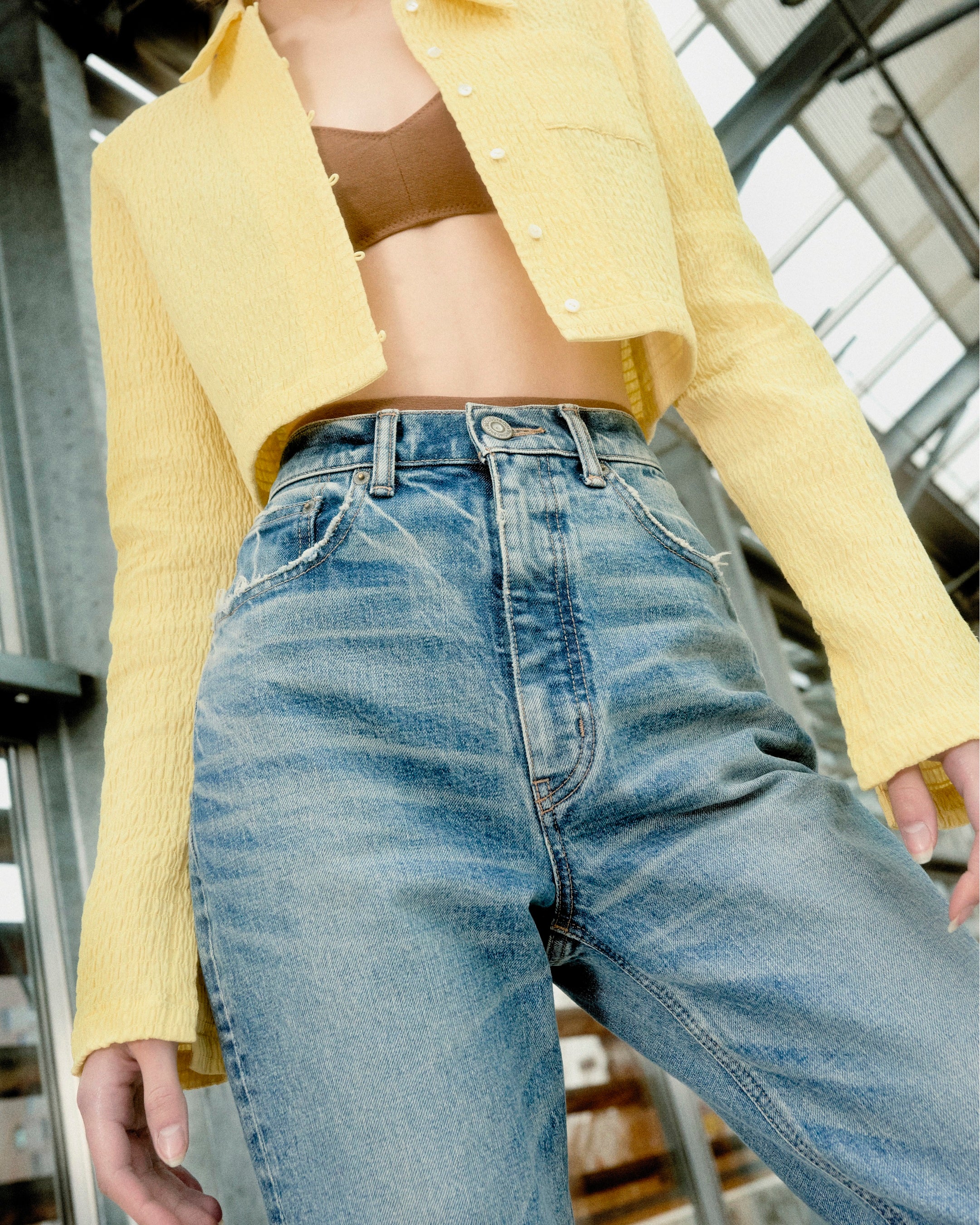 MOUSSY JEANSが愛される所以である古着のような加工感、ストレッチ性のある履き心地、こだわりのシルエット。新たな体験を求めて全てをアップデートするため、糸選びから生地開発をスタートしました。