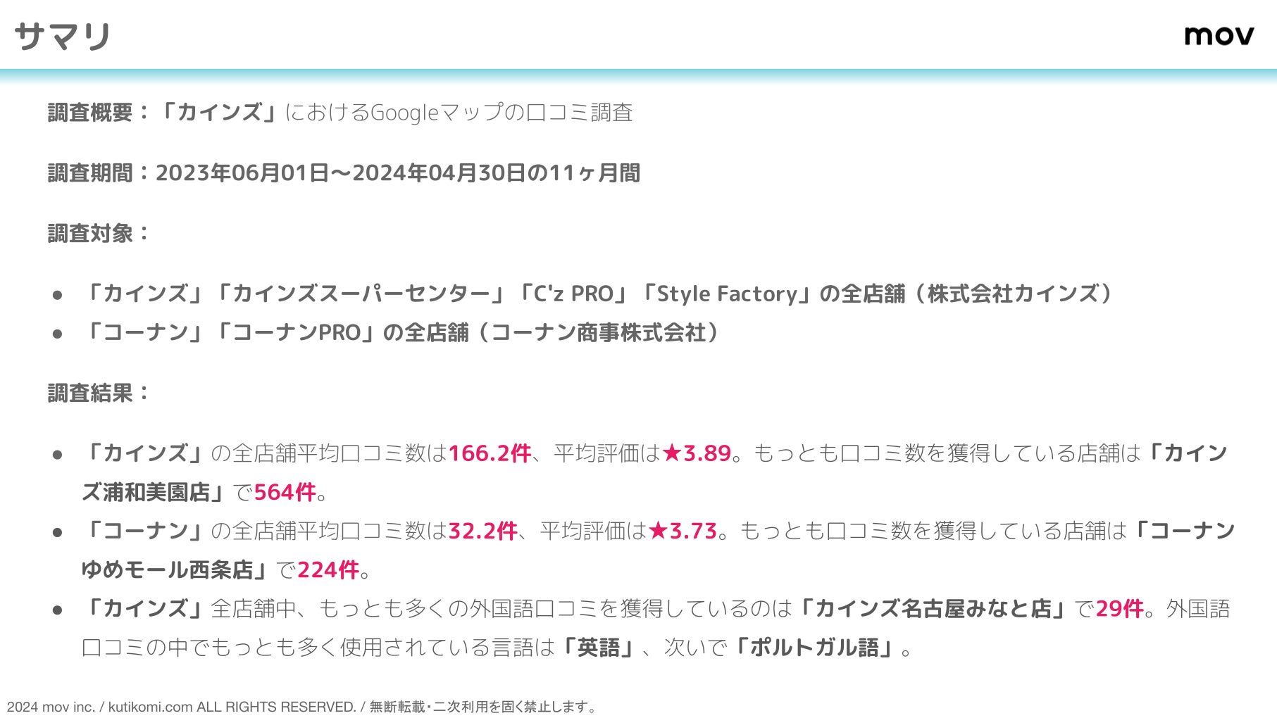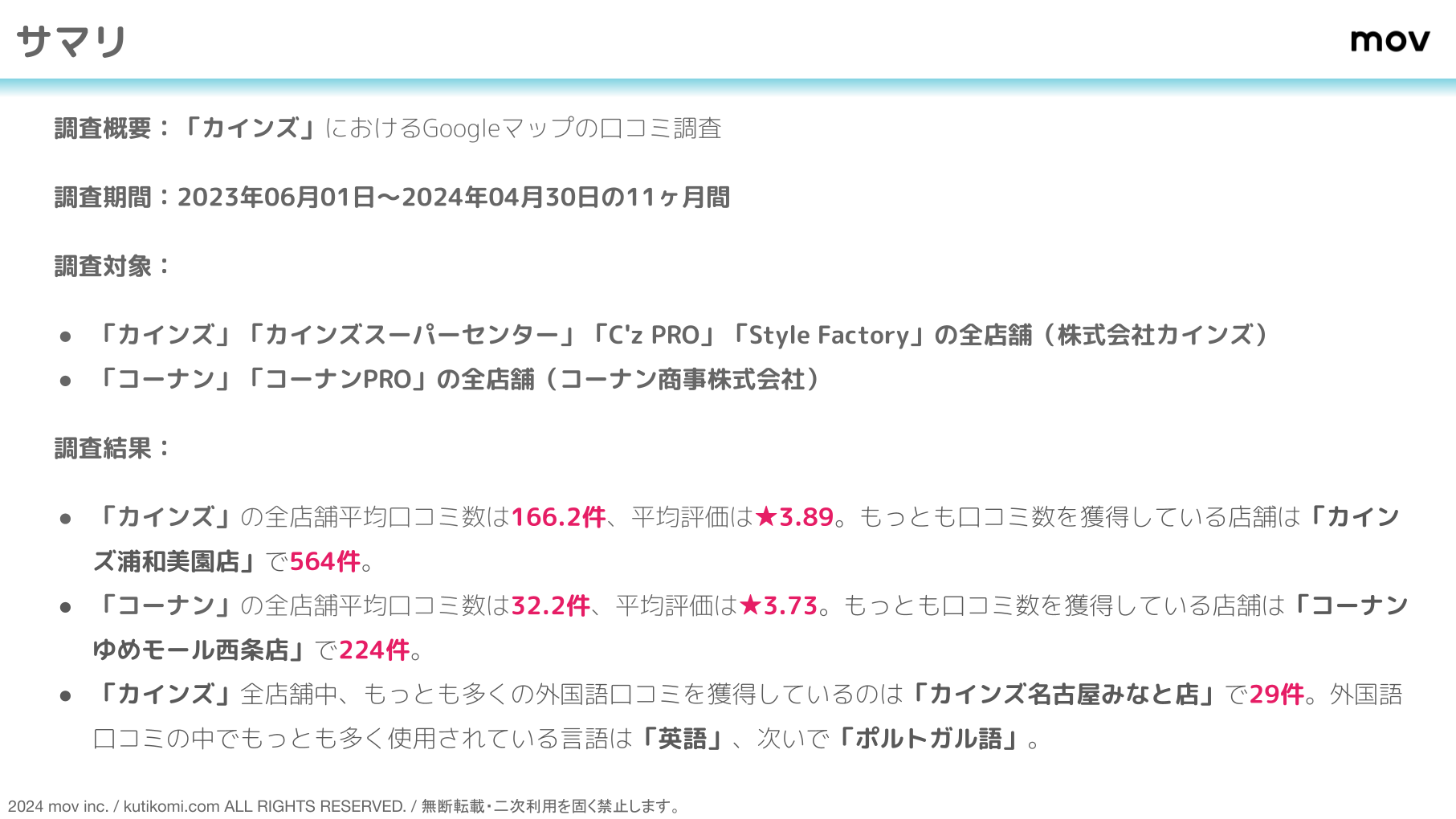 今回は「カインズ」・「コーナン」全店舗に寄せられた約5.6万件の口コミを分析しました。