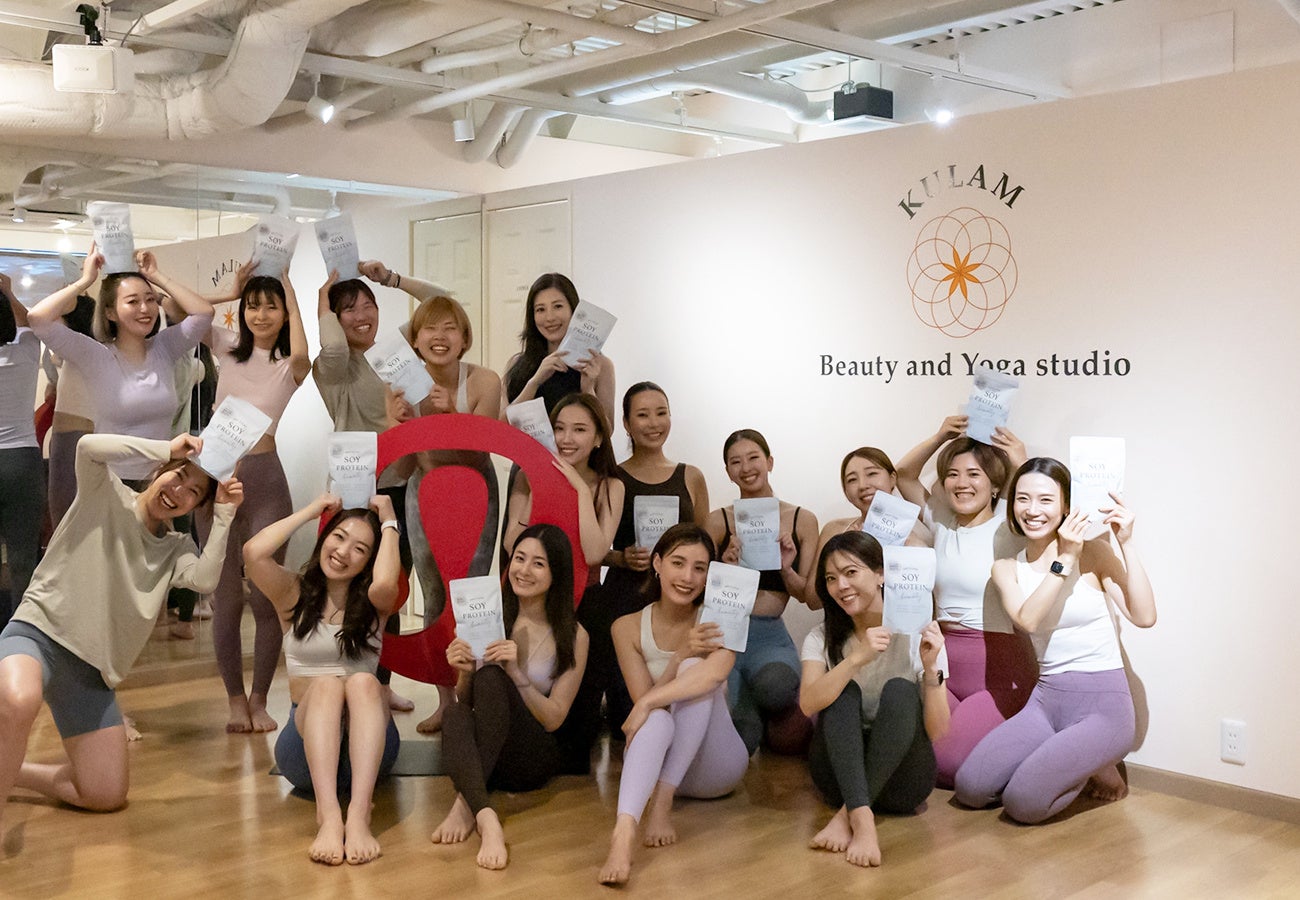 5月17日、ソイプロアンバサダーの西尾樺菜さんが運営するBeauty and Yoga studio KULAMとlululemonがコラボしたヨガイベントを、「ソイプロビューティSAKE味」が応援しました。