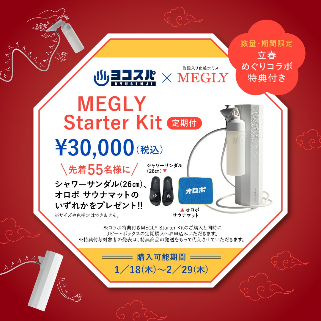 コラボイベント期間中は、竜泉寺の湯グッズ付きMEGLY Starter Kitを先着55名様へ販売!