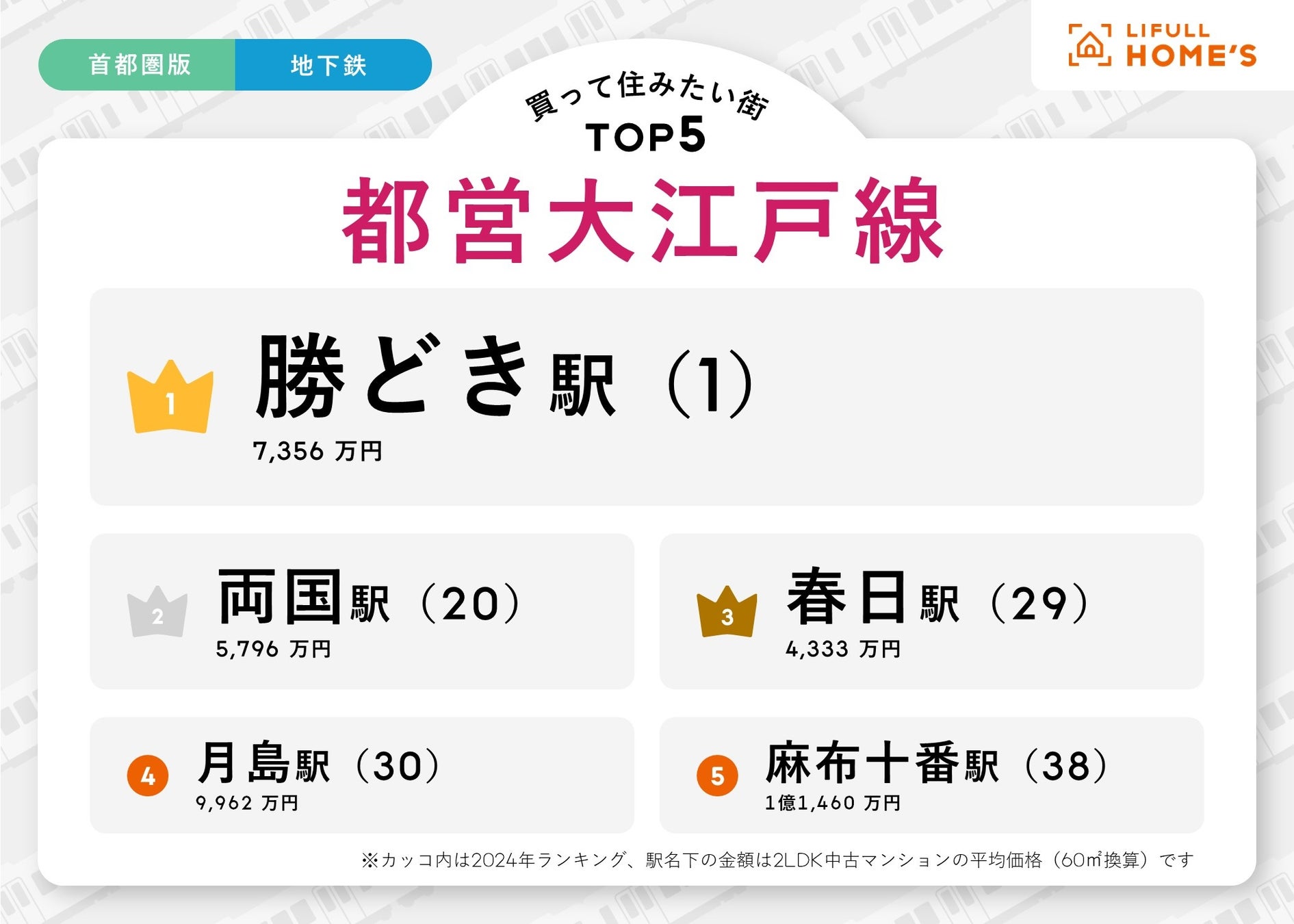首都圏の地下鉄「買って住みたい街が多い路線」は都営大江戸線!購入物件の問合せが多い鉄道路線ランキング<首都圏・地下鉄編>