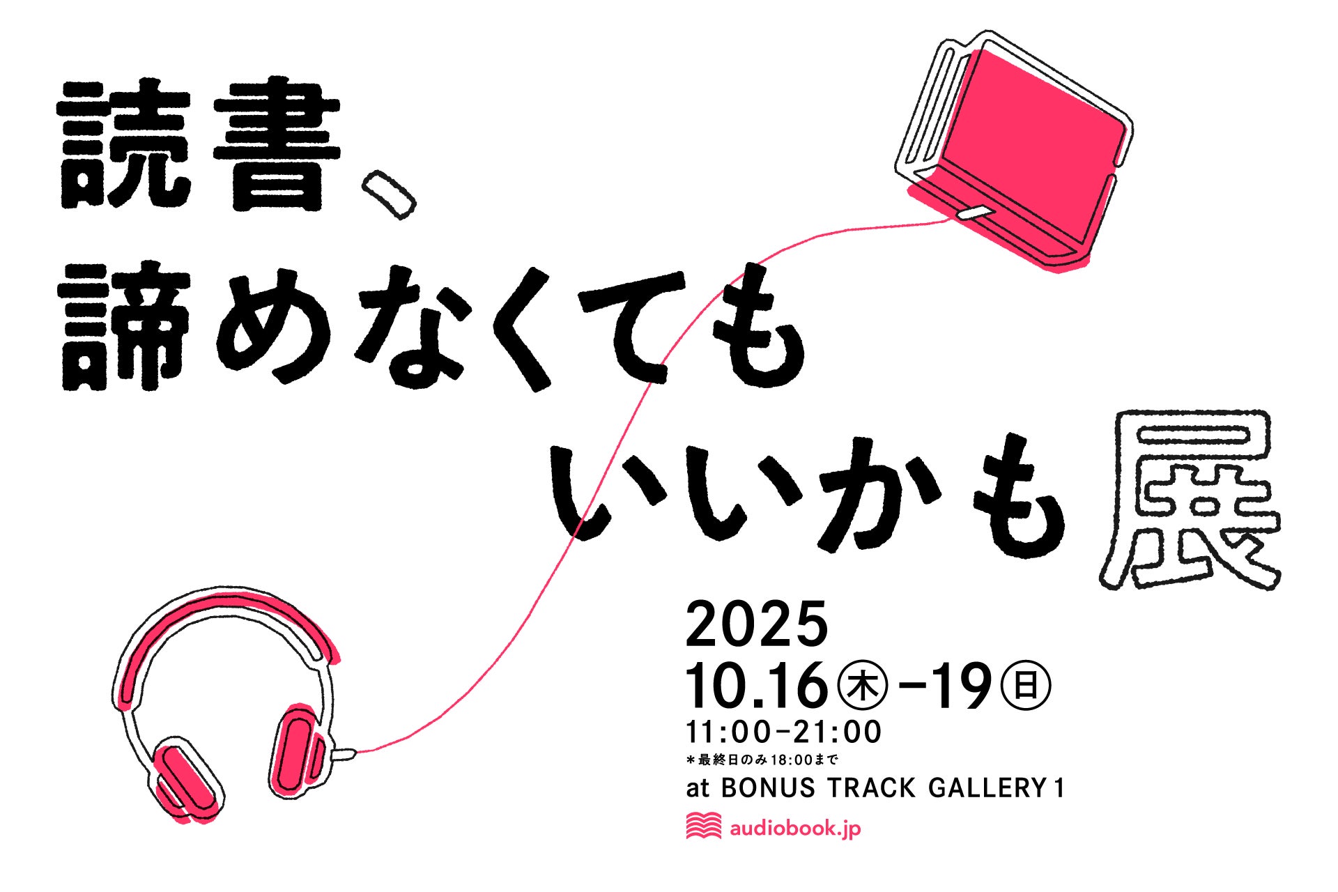 オーディオブック書籍ラインナップ数No.1(※1)の「audiobook.jp」を運営する株式会社オトバンク(本社:東京都文京区、代表取締役社長:久保田裕也、以下「オトバンク」)は、2025年10月16日(木)〜19日(日)、東京・下北沢のBONUS TRACKにて「読書、諦めなくてもいいかも展」を開催いたします。