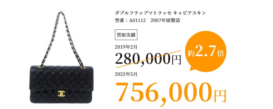 多くのラグジュアリーブランドの定価はこの数年で上昇し、20~30年前には数十万ほどで購入できたブランド品が現在では100万を超す場合もあります。そのため、中古ブランド品相場も上昇し、保存状態が良ければ十数年前に購入したブランド品が、当時の定価よりも高い金額で買い取られることもあります。また、金相場は2023年3月15日(水)に過去最高値を更新。現在も高値で推移しており、広島本通店新規オープンキャンペーンと合わせ、よりお得に買取サービスをご利用いただけます。