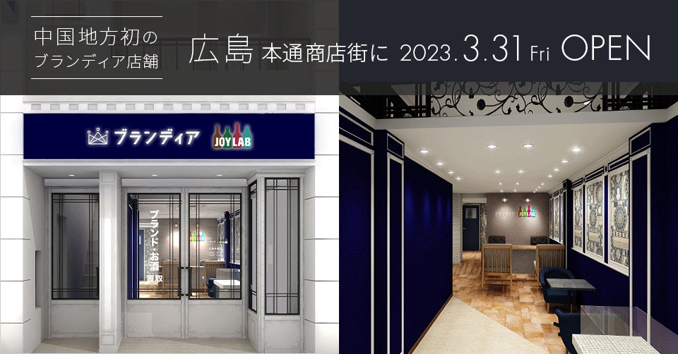 BEENOS株式会社(東証プライム 3328)の連結子会社で、プレラブド(Preloved=大切に使用された)なアイテムをサスティナブルな循環につなげる国内最大級のブランド買取・販売サービス「ブランディア(https://brandear.jp/)」を運営する株式会社デファクトスタンダード(本社:東京都大田区、代表取締役社長:仙頭健一、以下「デファクトスタンダード」)は、2023年3月31日(金)に中国地方では初の店舗、「ブランディア広島本通店」(広島県広島市中区本通4-9 本通グリル1・2階)をオープンいたします。 「ブランディア広島本通店」は14店舗目のブランディア店舗となります。「ブランディア広島本通店」は、お酒買取「JOYLAB」との併設店になり、専門性の高いブランド品買取・お酒買取を提供する店舗となります。